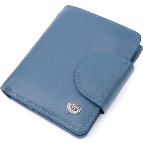 Портмоне доповнено надійною фурнітурою і прошито по краю рівним рядком бірюзового кольору.