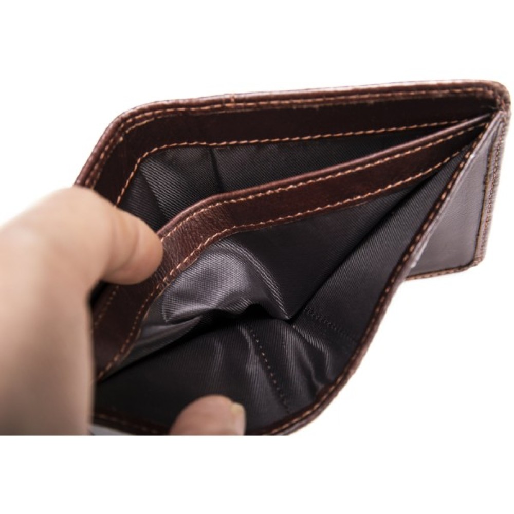 Функціональний та стильний гаманець для чоловіків. Глянсове покриття моделі буде красиво грати на сонячних променях. Портмоне з легкістю поміститься в кишеню брюк. Виріб прошито по краях світлою ниткою. Модель дуже компактна. Варто зазначити, що у виробі відсутня монетниця. Портмоне підійде для вас, якщо ви віддаєте перевагу купюрам і банківськими картками.