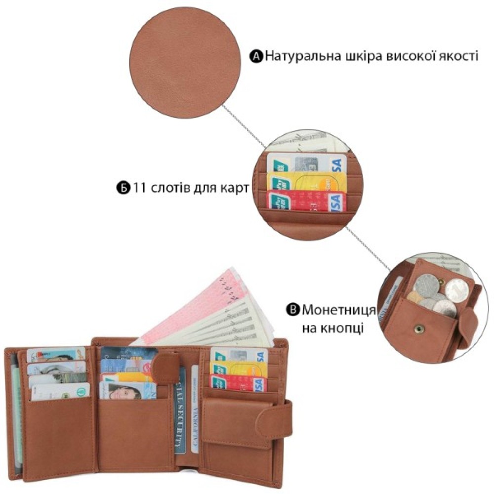 Портмоне, Vintage, З, натуральної, шкіри, Коричневе, 14534