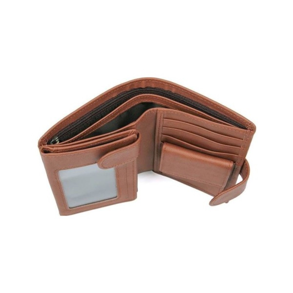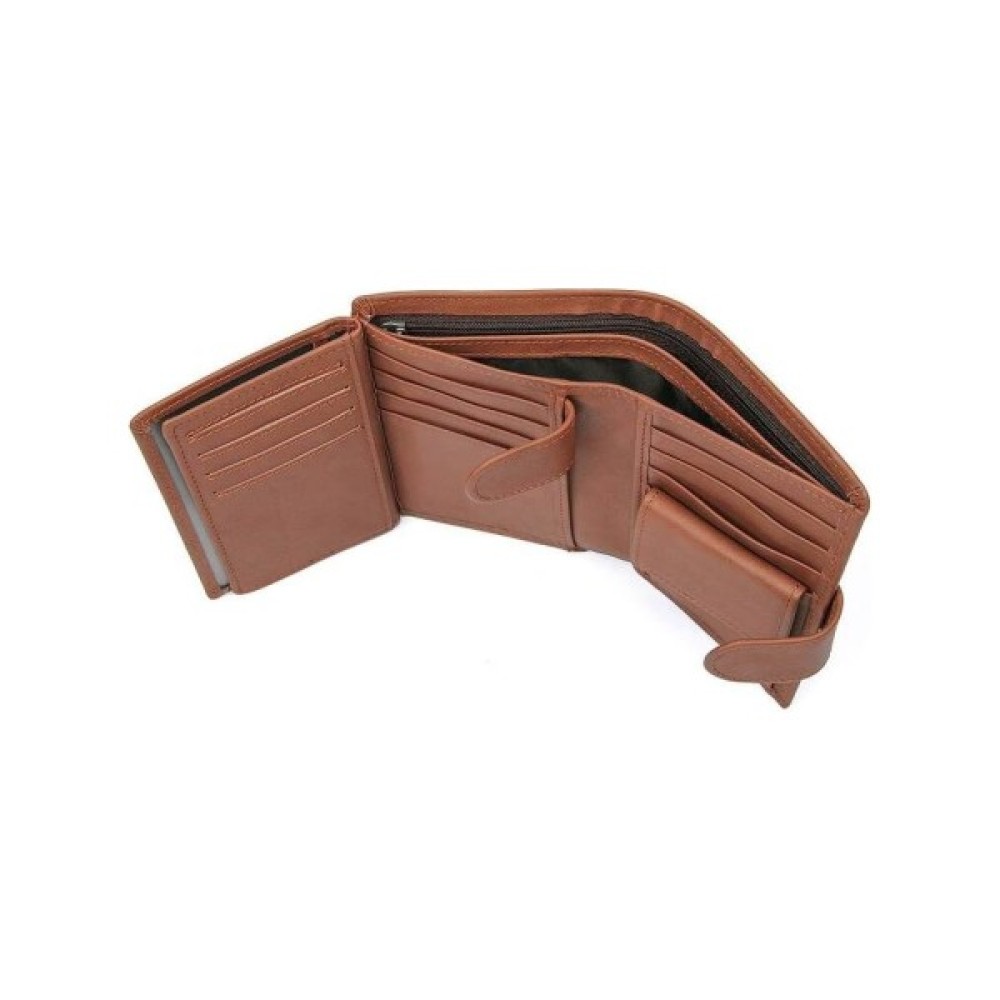 Місткий чоловічий шкіряний гаманець коричневого кольору. Гаманець надійно прошитий світло-коричневою ниткою.