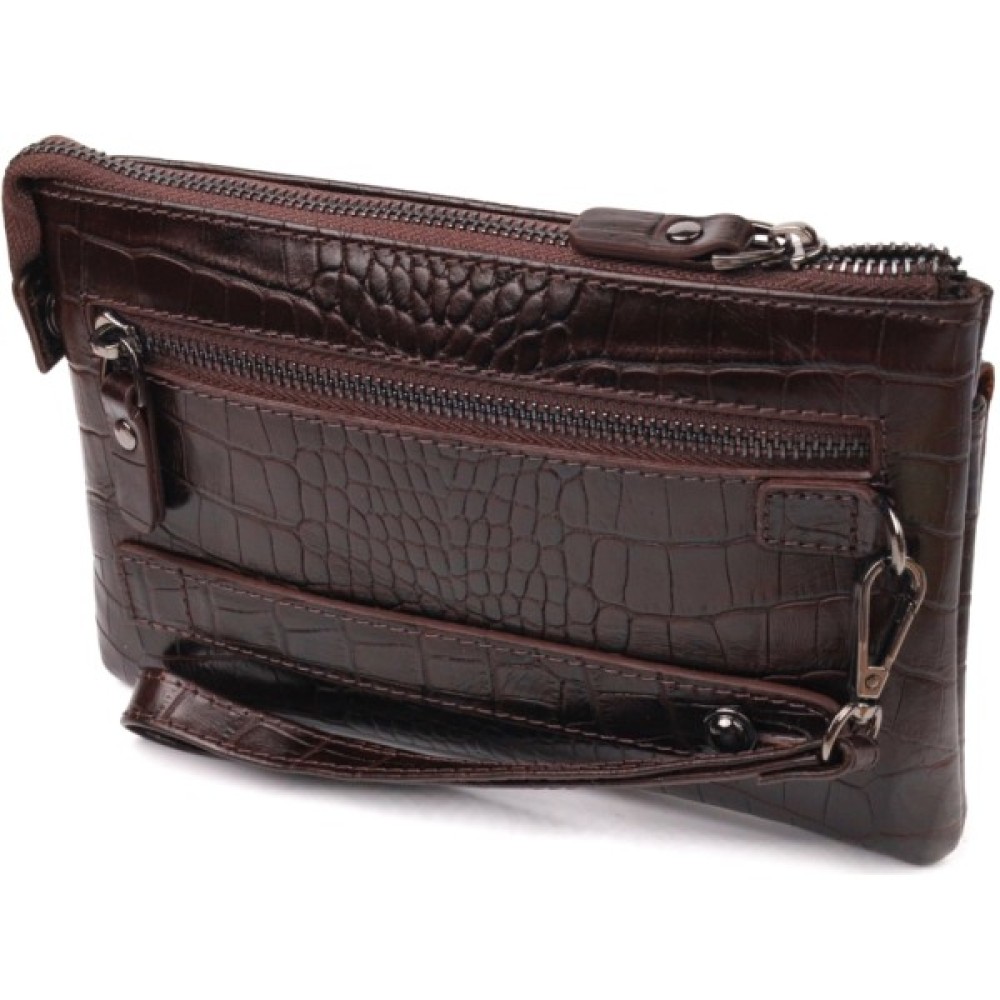 Цікавий чоловічий клатч з натуральної фактурної шкіри з тисненням під крокодила.