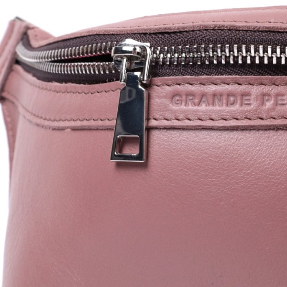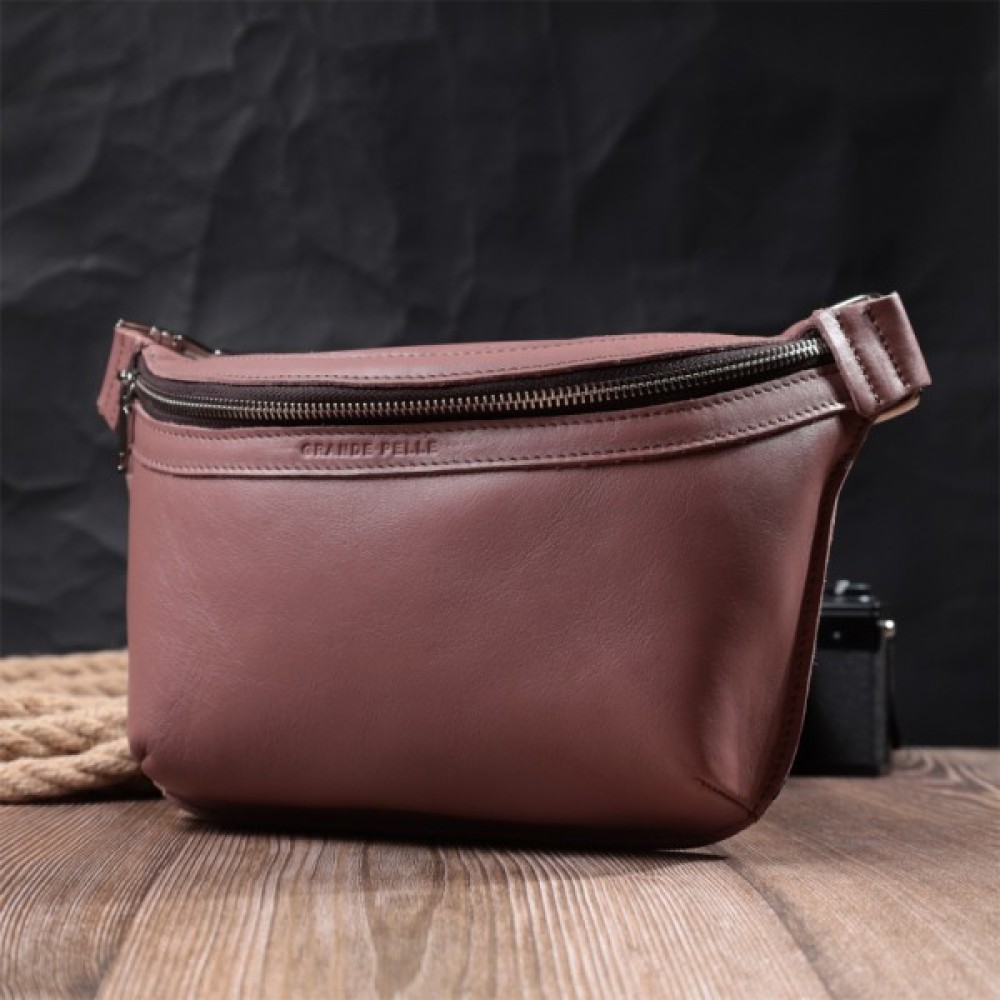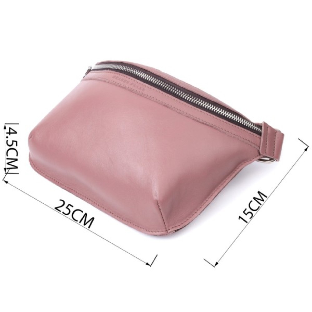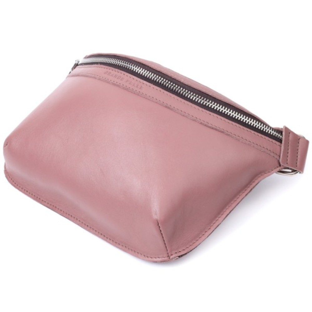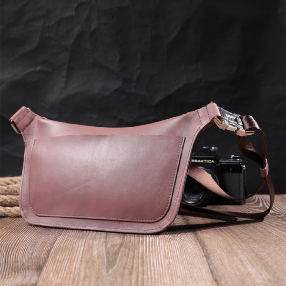 Стильна жіноча поясна сумка з натуральної люксової шкіри, в красивому бежево-рожевому кольорі.