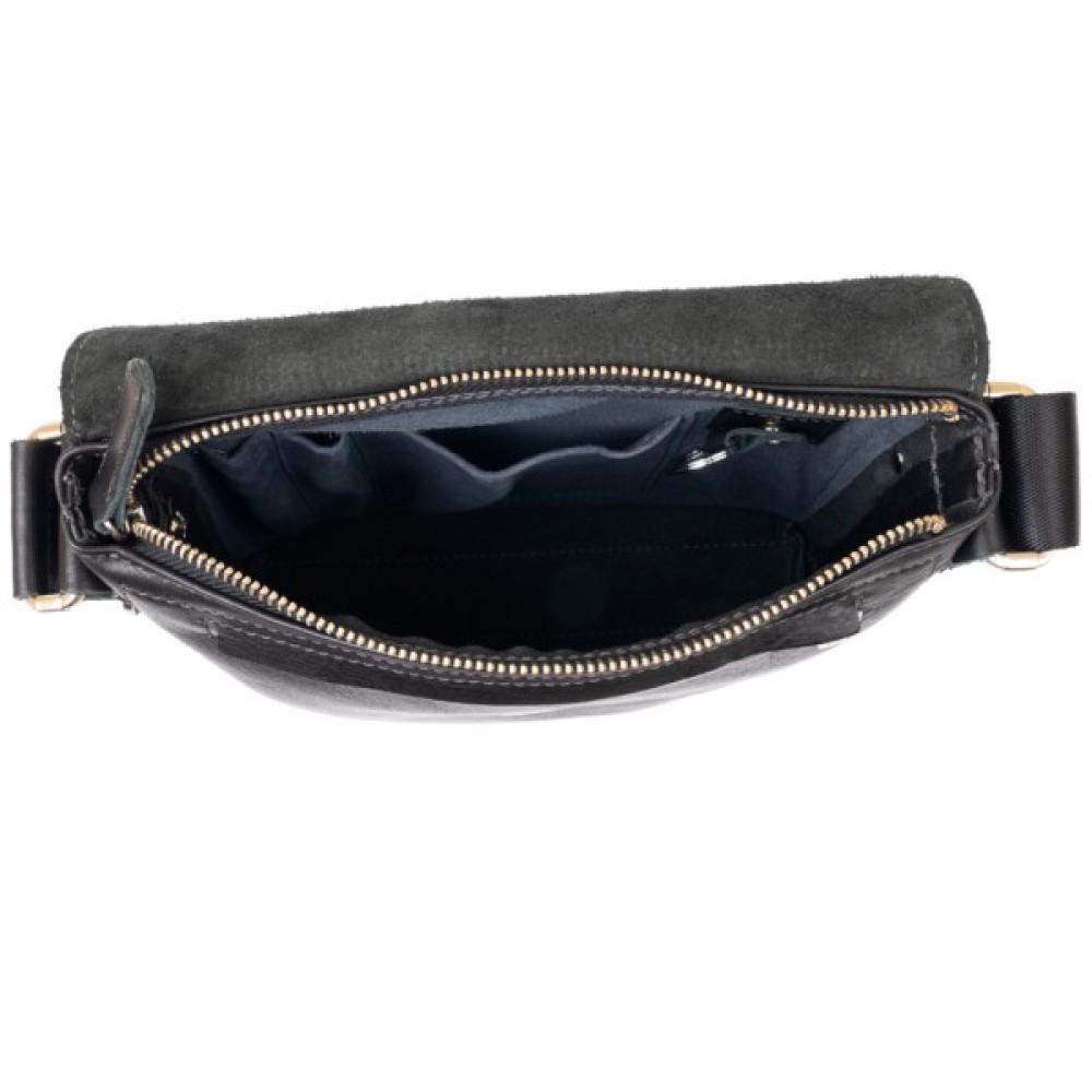 Сумка з незнімним регульованим текстильним ремінцем. Розміри сумки в описі були виміряні за: висота по тильній стороні, ширина по дну, глибина по боках.