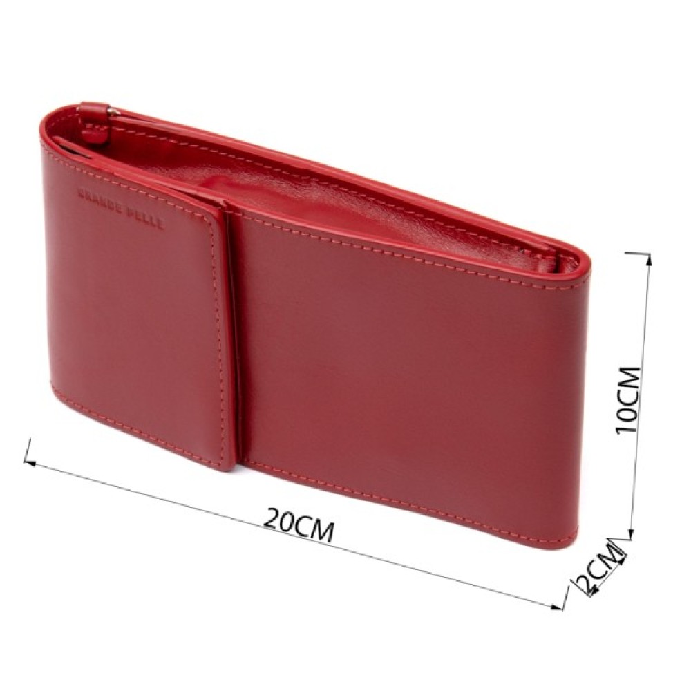 Оригінальний жіночий гаманець-сумка з зносостійкої натуральної шкіри високого класу. Має гарний привабливий червоний колір і гладку фактуру. Всередині є місткі відділення, слоти для кредиток і кишеня на блискавці на задній зовнішній стінці. Також передбачений регульований ремінець через плече. А за допомогою карабіна гаманець можна приєднати до ременя. Упакований він в спеціальний чохол.