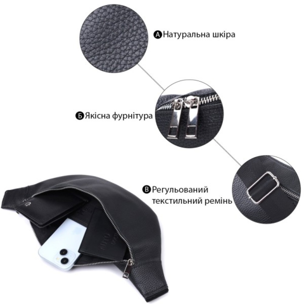 Стильна бананка унісекс із натуральної зернистої шкіри високої якості. Ця модель є однією з найпопулярніших серед наших клієнтів завдяки своїй практичності та компактності.