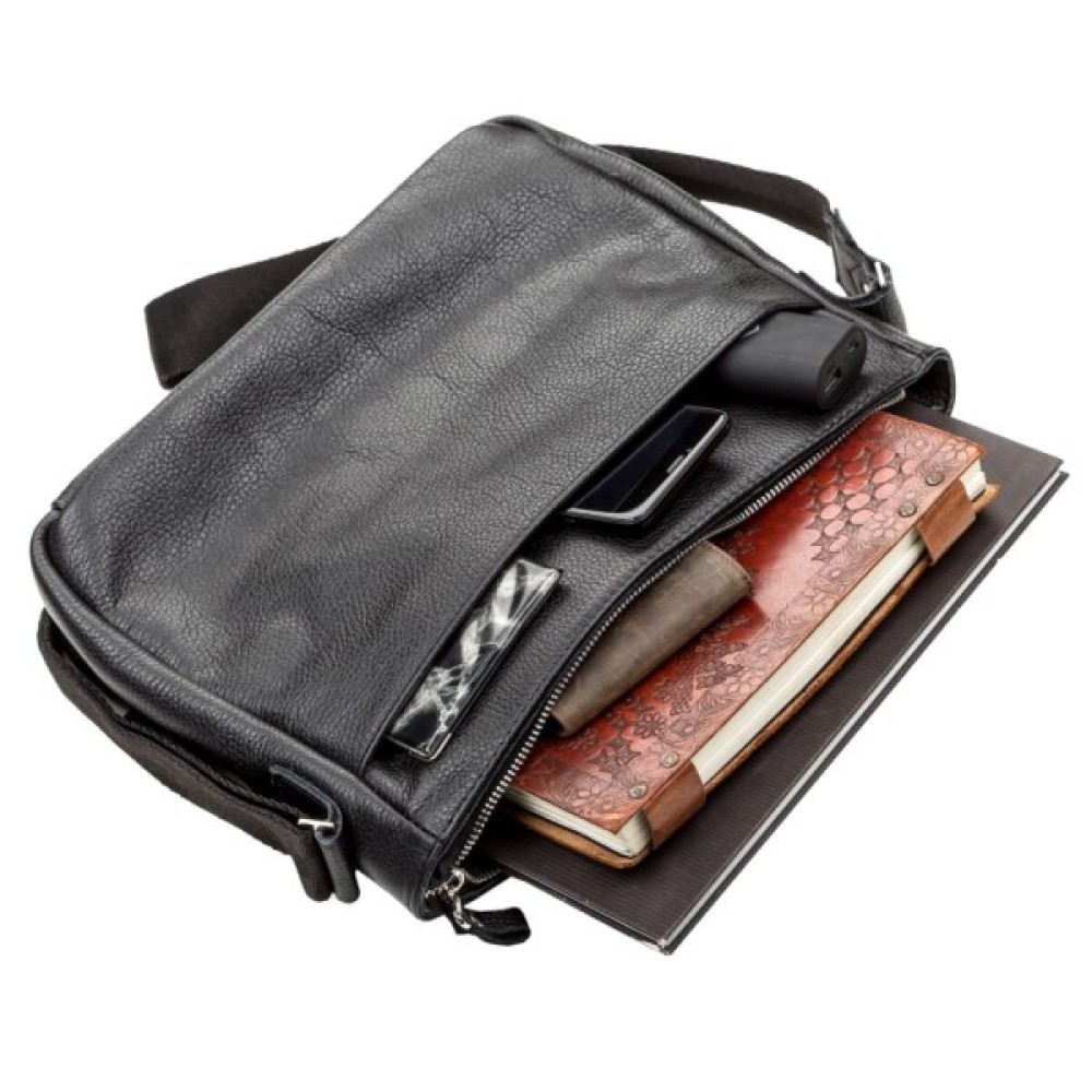 Чудова сумка в діловому стилі з якісної натуральної шкіри. Сумка має просторе внутрішнє відділення, в якому можна розмістити документи формату А4 і навіть невеликий ноутбук. Міцний текстильний ремінь регулюється по довжині.