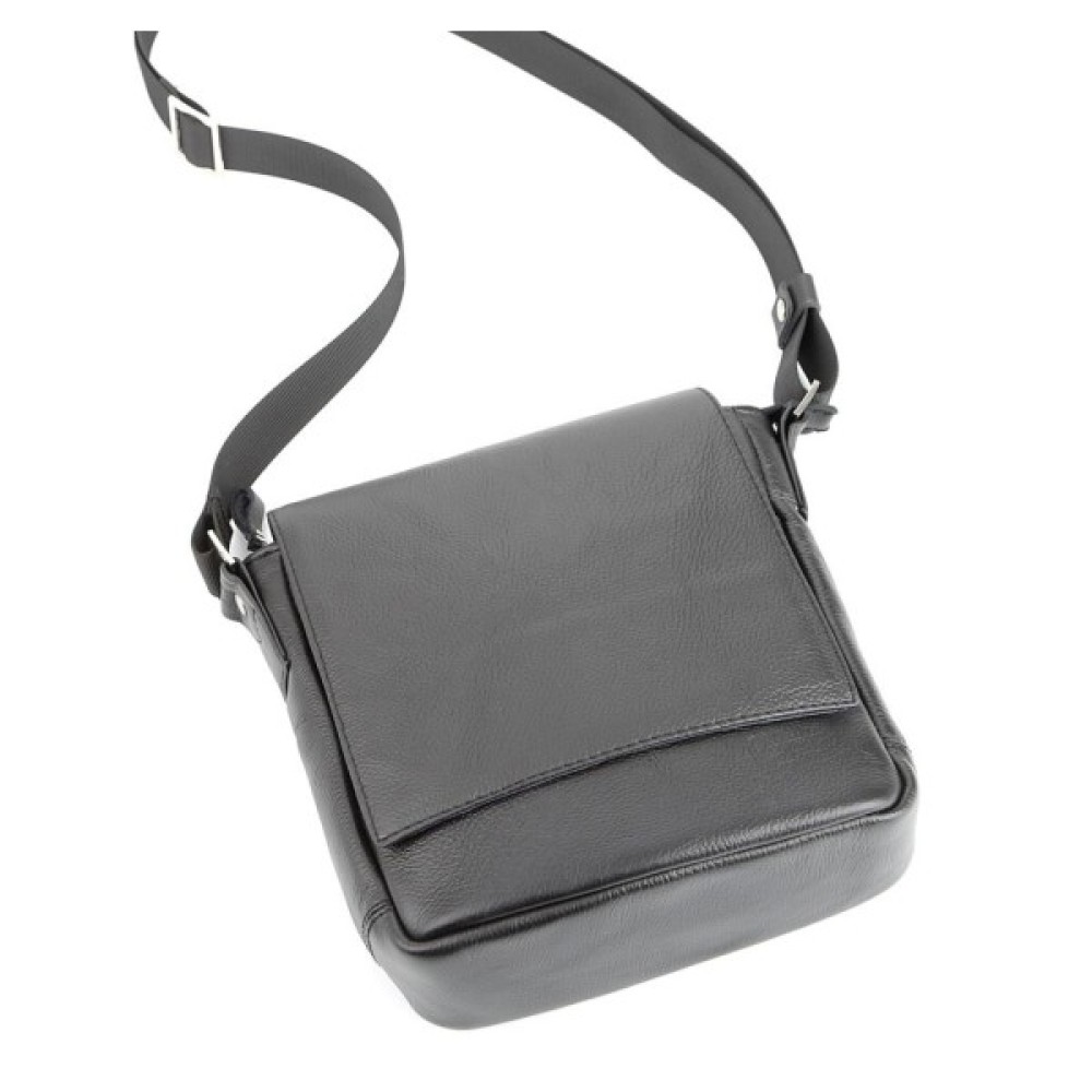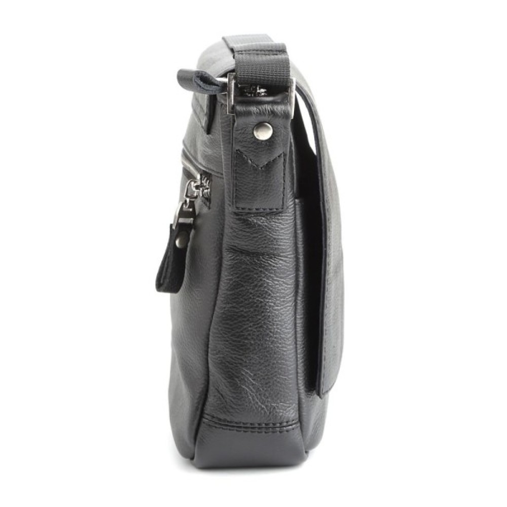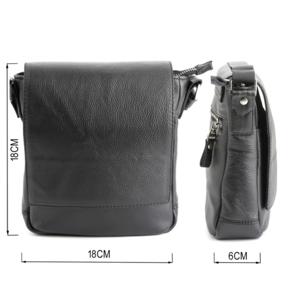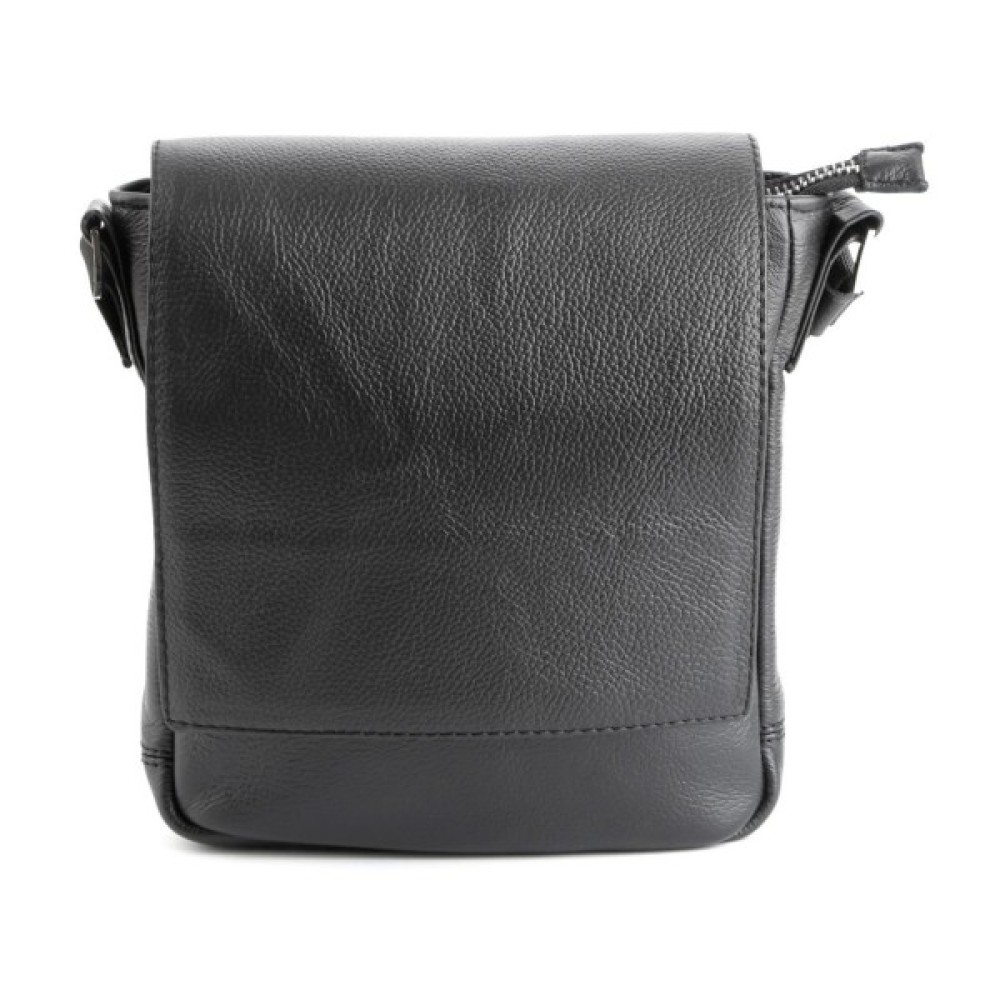Компактна чоловіча шкіряна сумка через плече українського виробництва. Шкіра, з якої виконаний цей аксесуар, приємна на дотик і має зернисту фактуру.