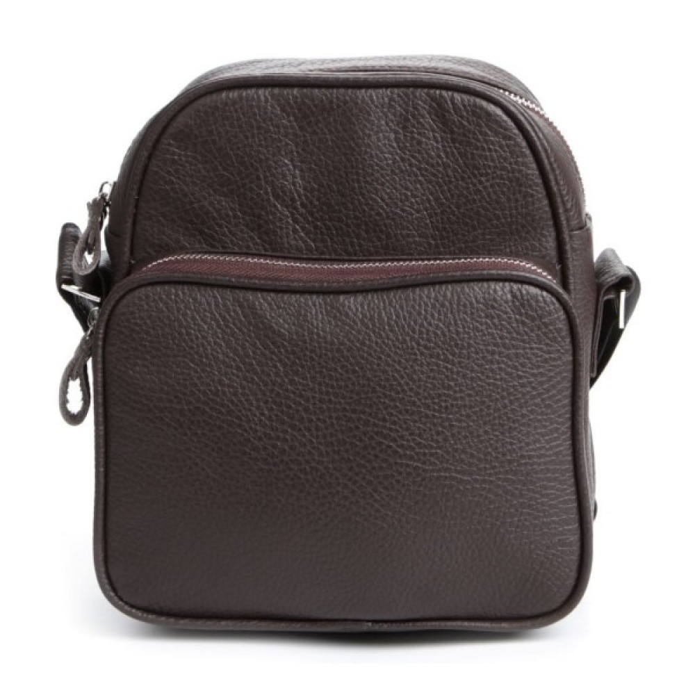 Сучасна чоловіча шкіряна сумка темно-коричневого кольору.