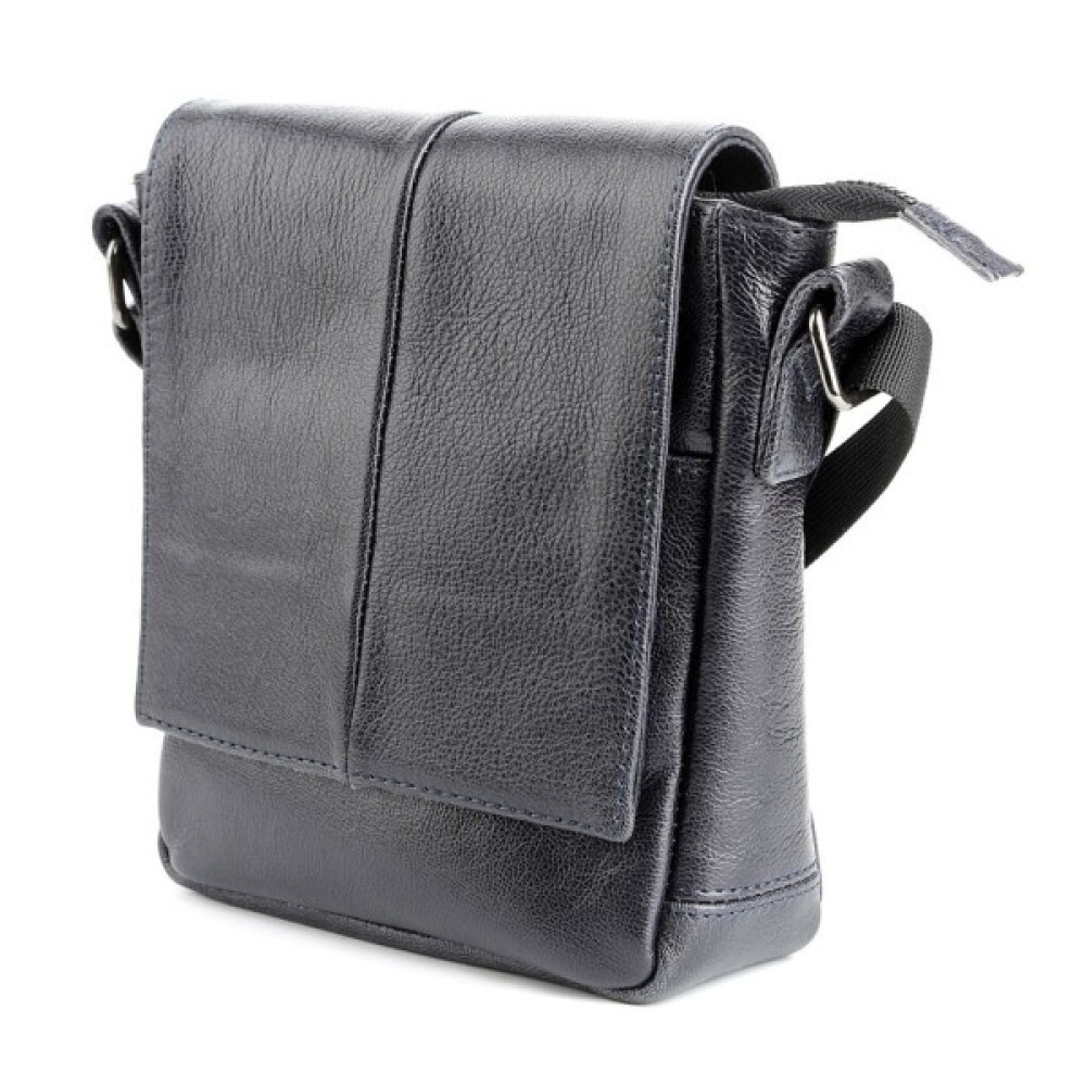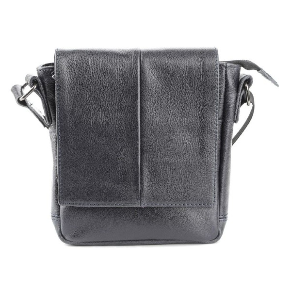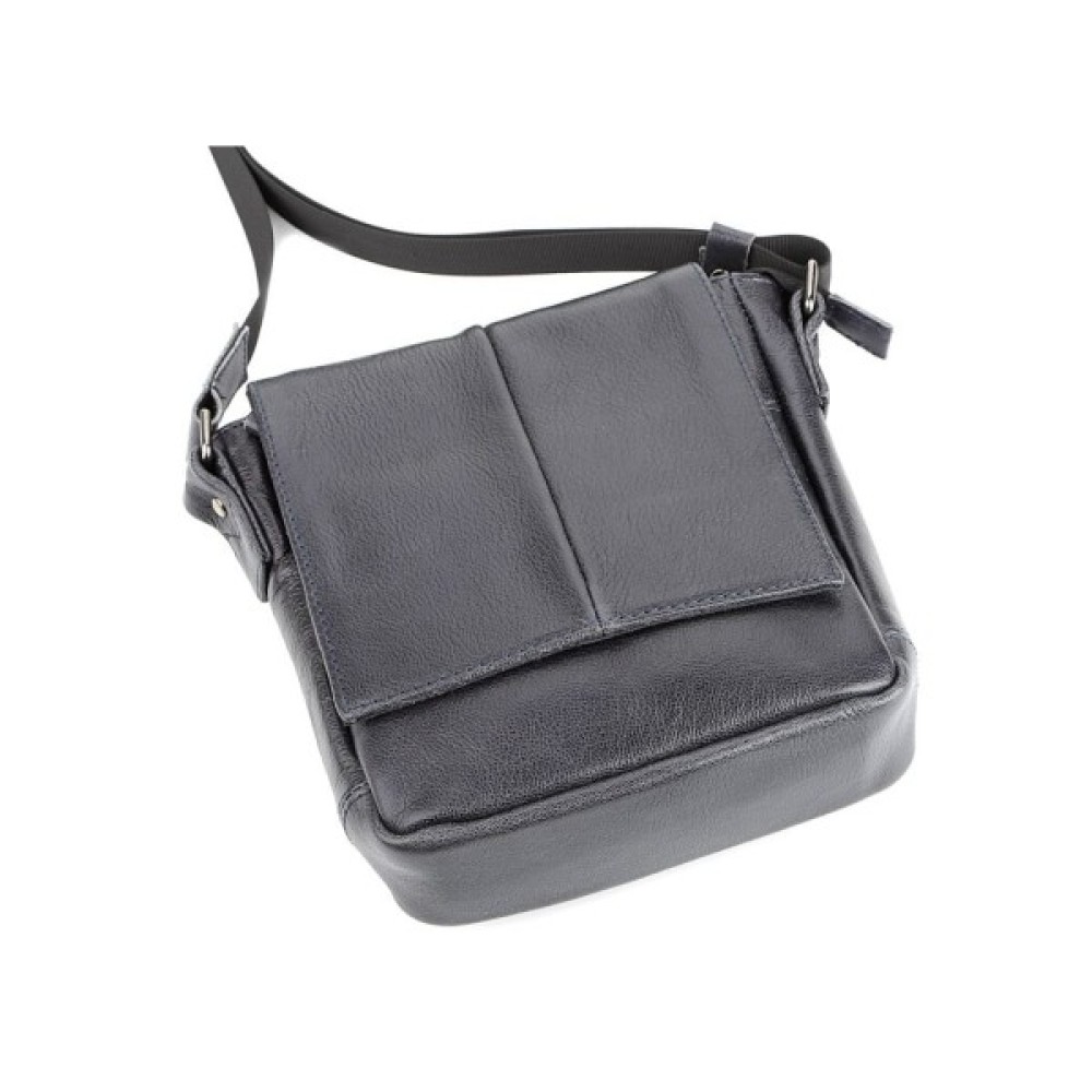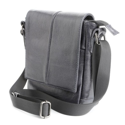 Високоякісна чоловіча шкіряна сумка. Аксесуар можна носити через плече за допомогою регульованого текстильного плечового ременя чорного кольору.