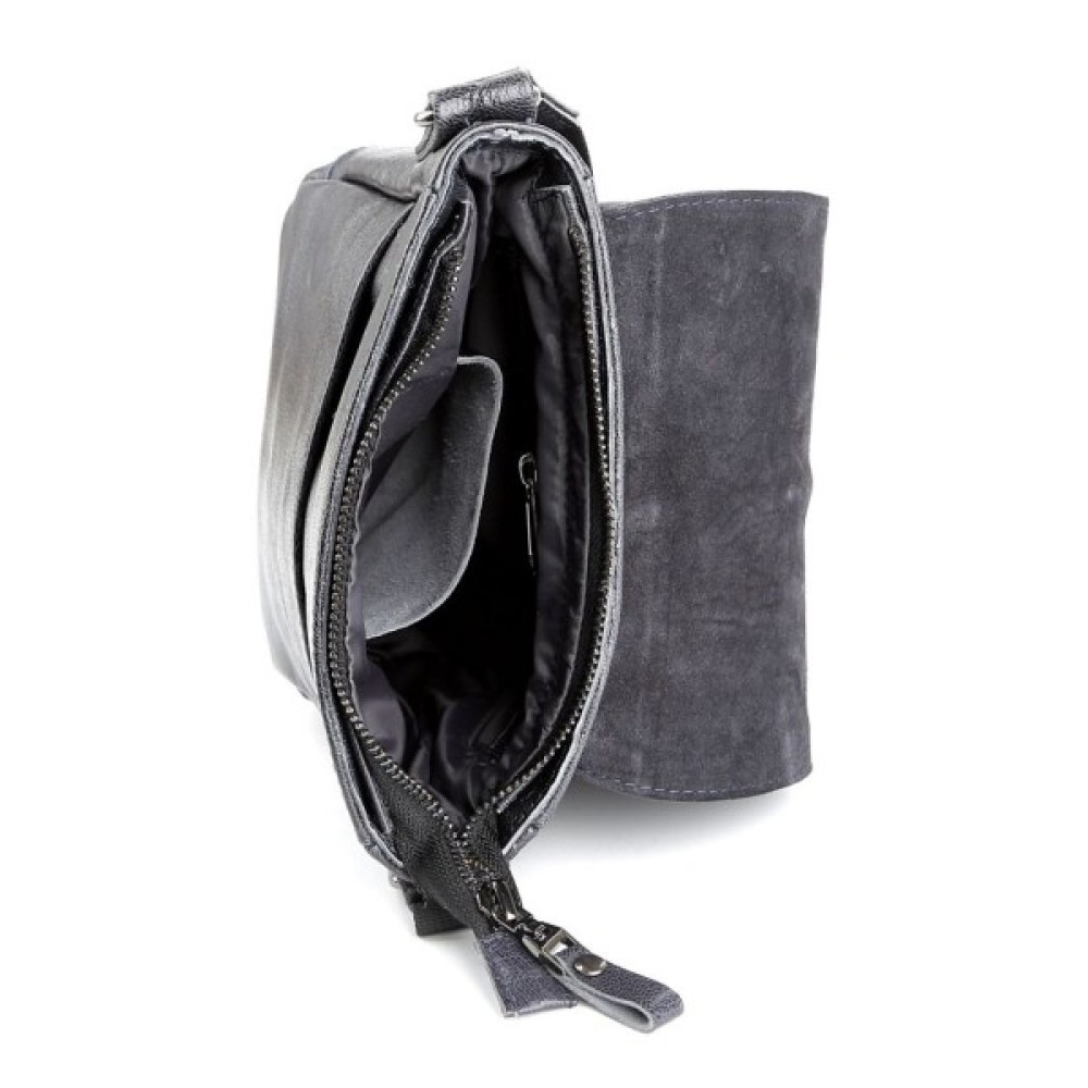 Виріб закривається шкіряним клапаном на двох прихованих магнітах і блискавкою.