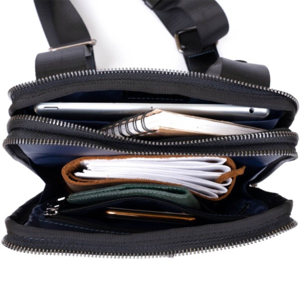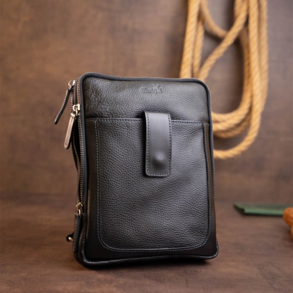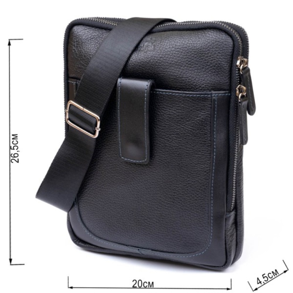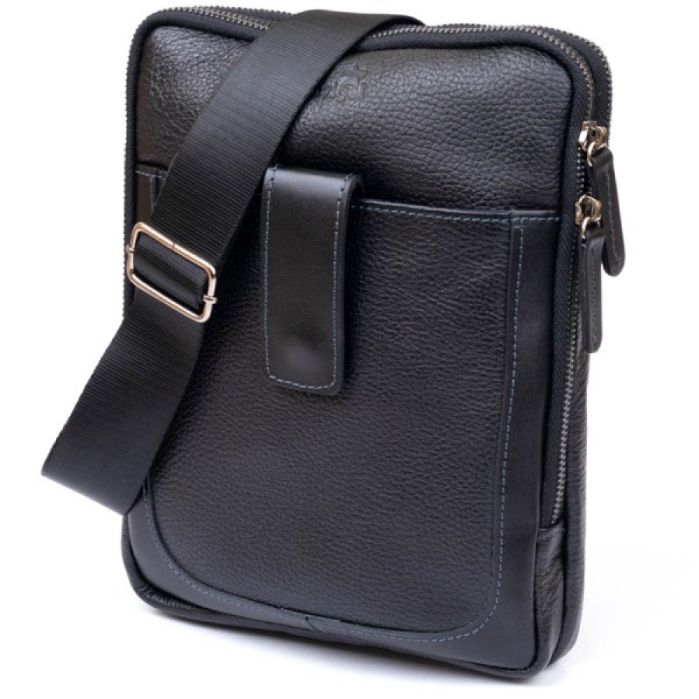 Практична сумка в зернистій шкірі "флотар" на два відділення. Модель в класичному чорному кольорі. Виробництво - Україна. Найвища якість виконання. Міцна фурнітура та якісні матеріали. Зерниста шкіра зовсім невибаглива в догляді. Довго служить і залишається в ідеальному вигляді. На виробах з зернистої шкіри менше видно подряпини і потертості. Чоловічий планшет - кращий варіант сумки на кожен день і для зустрічей. У дизайні моделі немає ніяких зайвих деталей при цьому сумка виглядає дуже модно і стильно. На лицьовій стороні моделі тиснення у вигляді логотипу бренду. Сумка доповнена вставками з гладкої шкіри з боків і хлястик на лицьовій стороні, що підкреслить її індивідуальний і продуманий дизайн, а вам в свою чергу додасть впевненості і солідності. Аксесуар доповнено текстильним незнімним ремінцем на плече. Шкіряна сумка - кращий подарунок для будь-якого чоловіка. Якщо ви хочете таку ж модель в коричневому кольорі - код для пошуку 11286, в вінтажній шкірі - 11285.