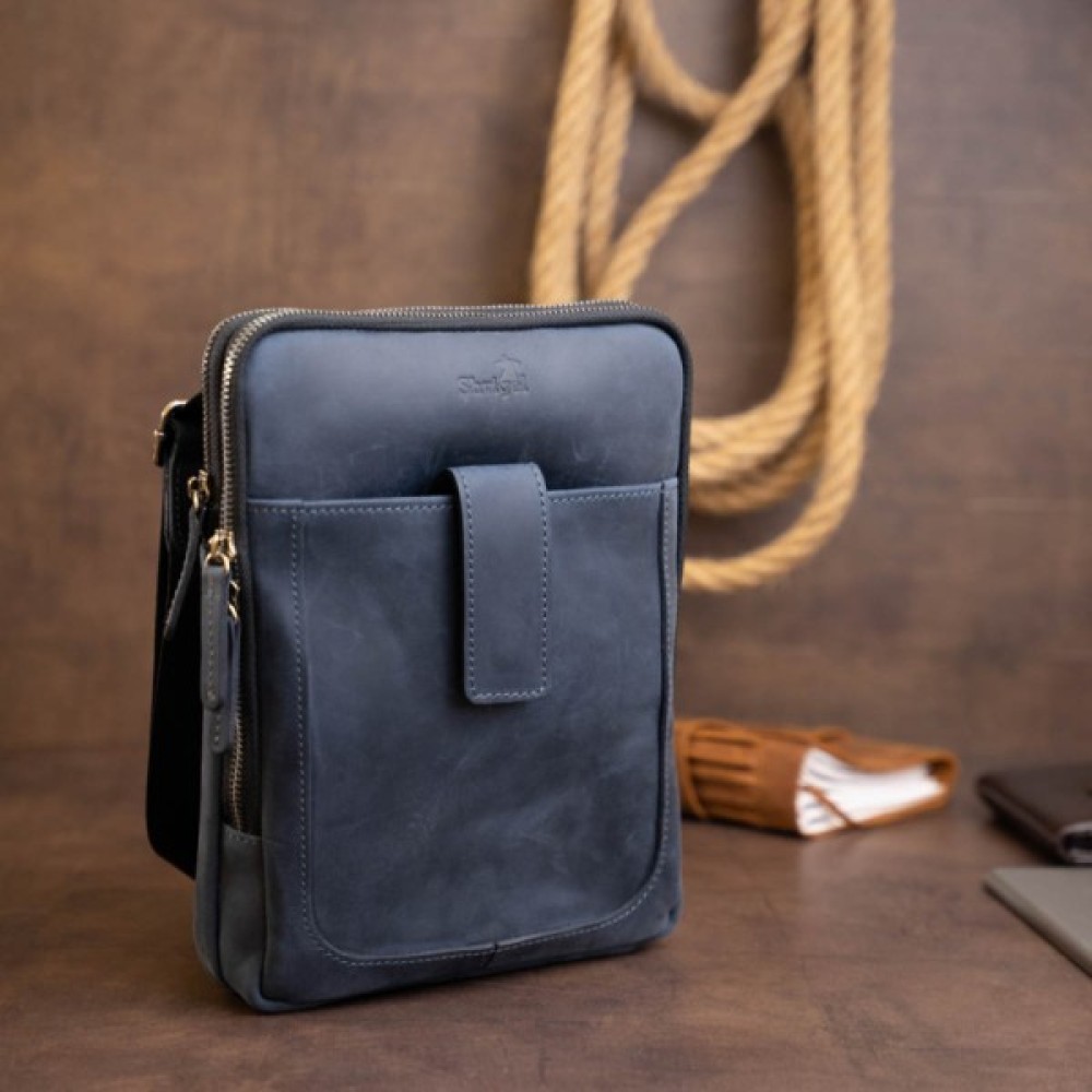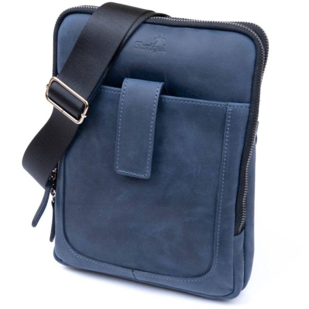 Сумка Shvigel На два відділення вінтажна шкіряна Синя (11284)