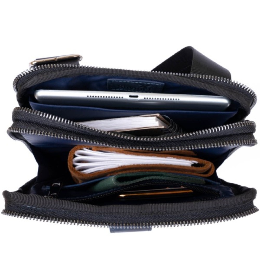 Особливості накладна кишеня на блискавці на лицьовій стороні; на тильній стороні кишеня на блискавці; текстильний регульований незнімний ремінець на праве або ліве плече