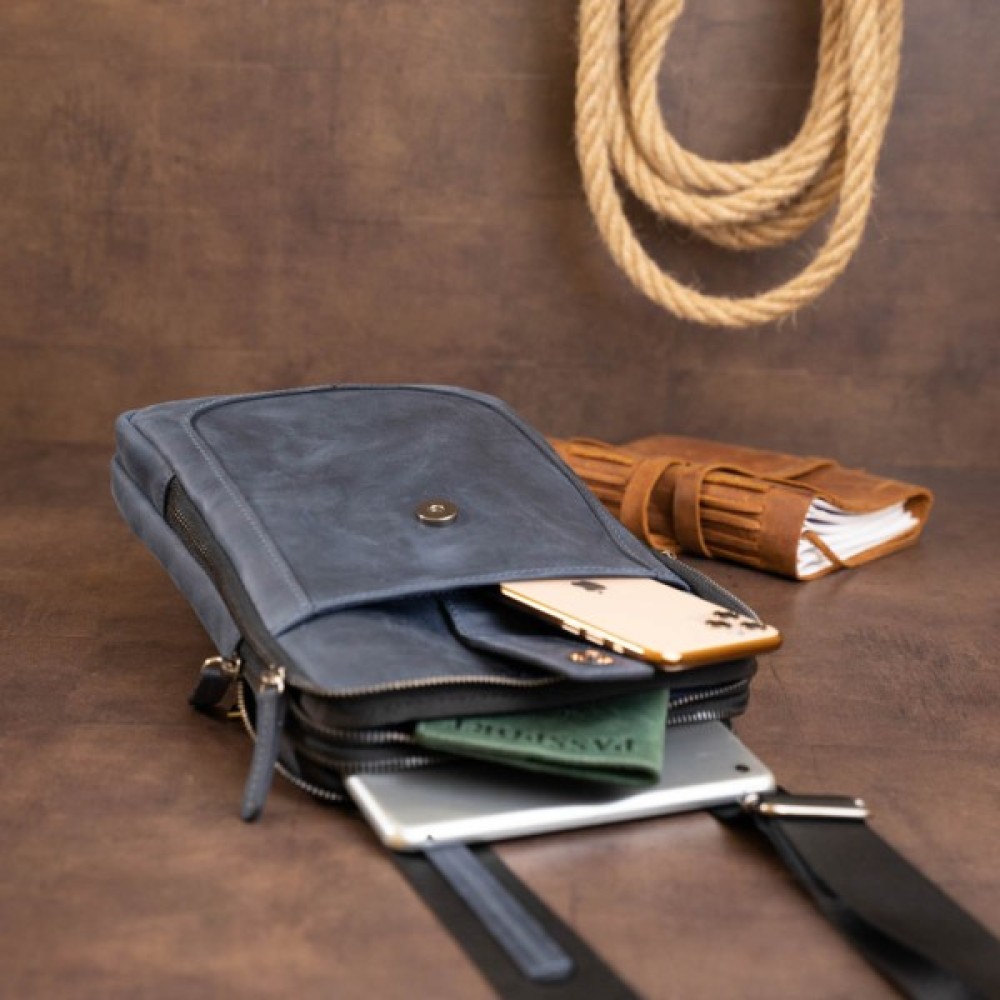 Сумка, Shvigel, На, два, відділення, вінтажна, шкіряна, Синя, 11284