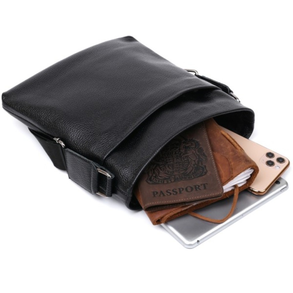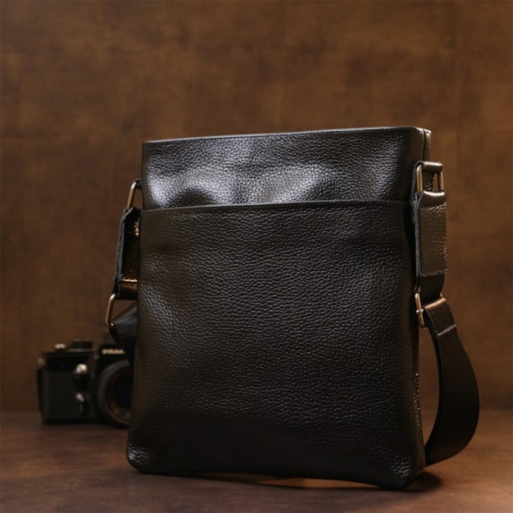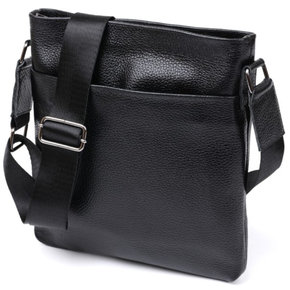 Стильна чоловіча сумка з ременем через плече із натуральної шкіри високої якості. Має універсальний чорний колір, тому підійде під одяг будь-якого стилю та кольору.