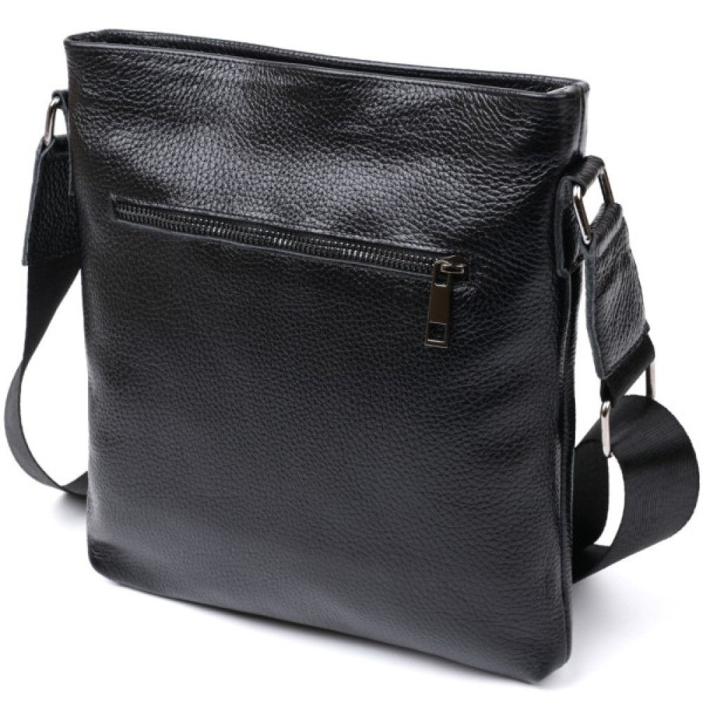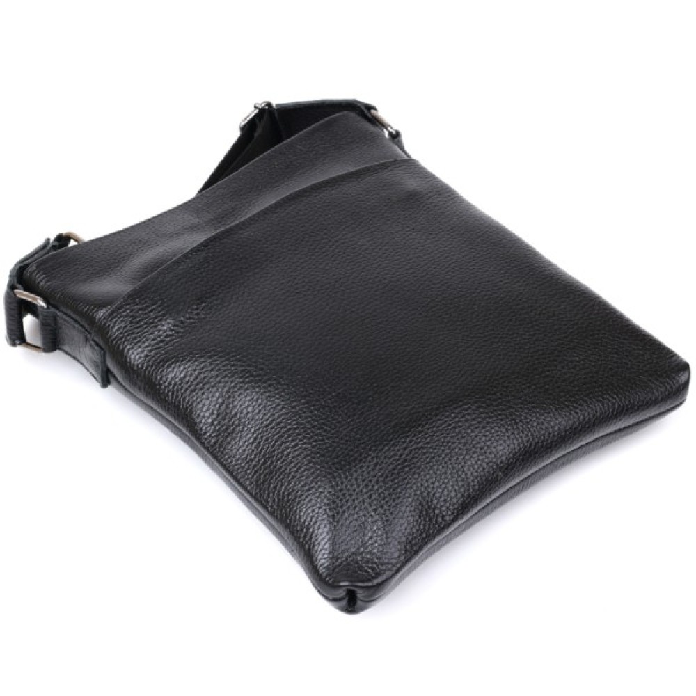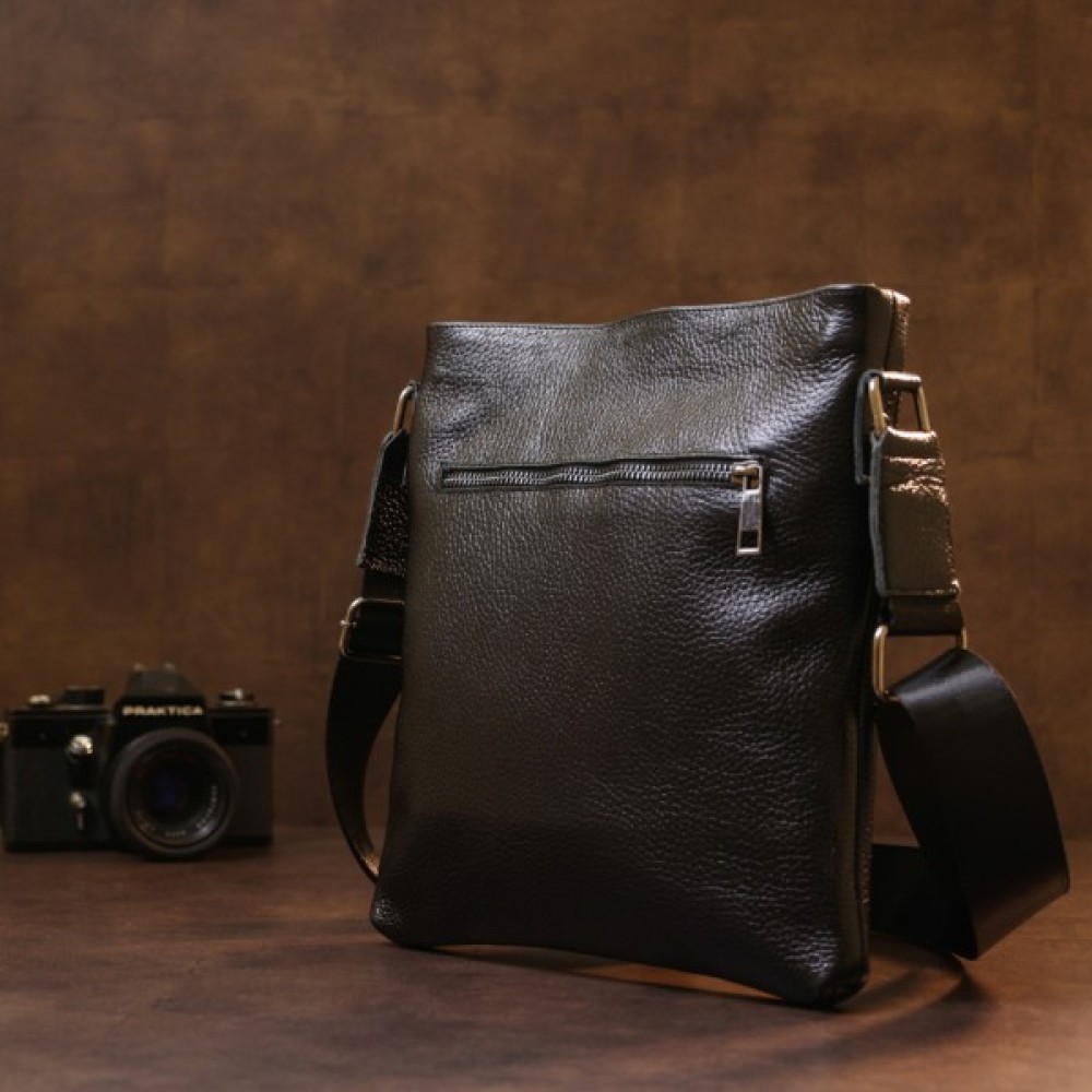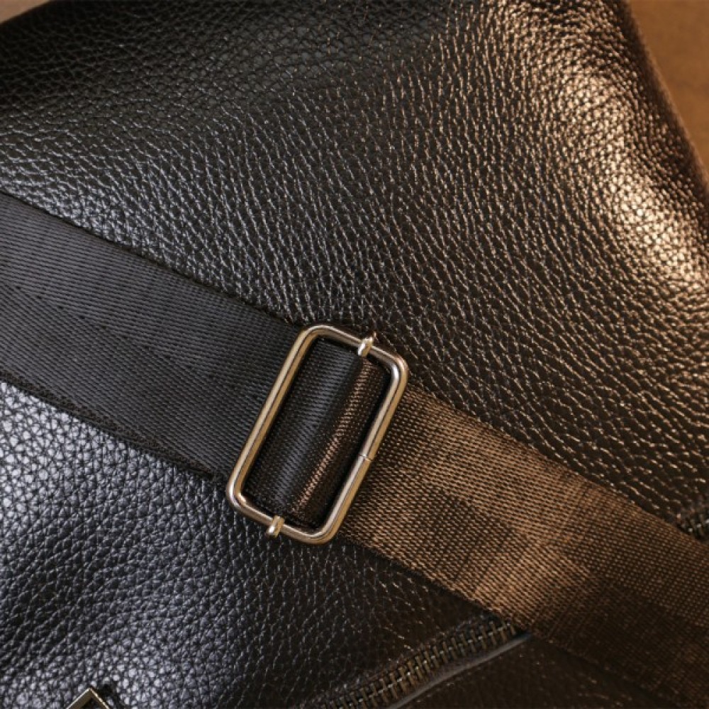Стильна чоловіча сумка з ременем через плече із натуральної шкіри високої якості. Має універсальний чорний колір, тому підійде під одяг будь-якого стилю та кольору.