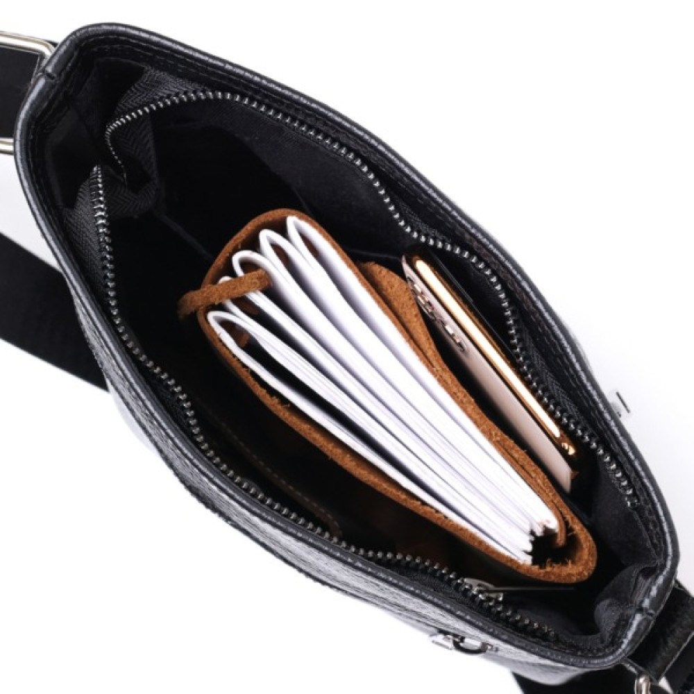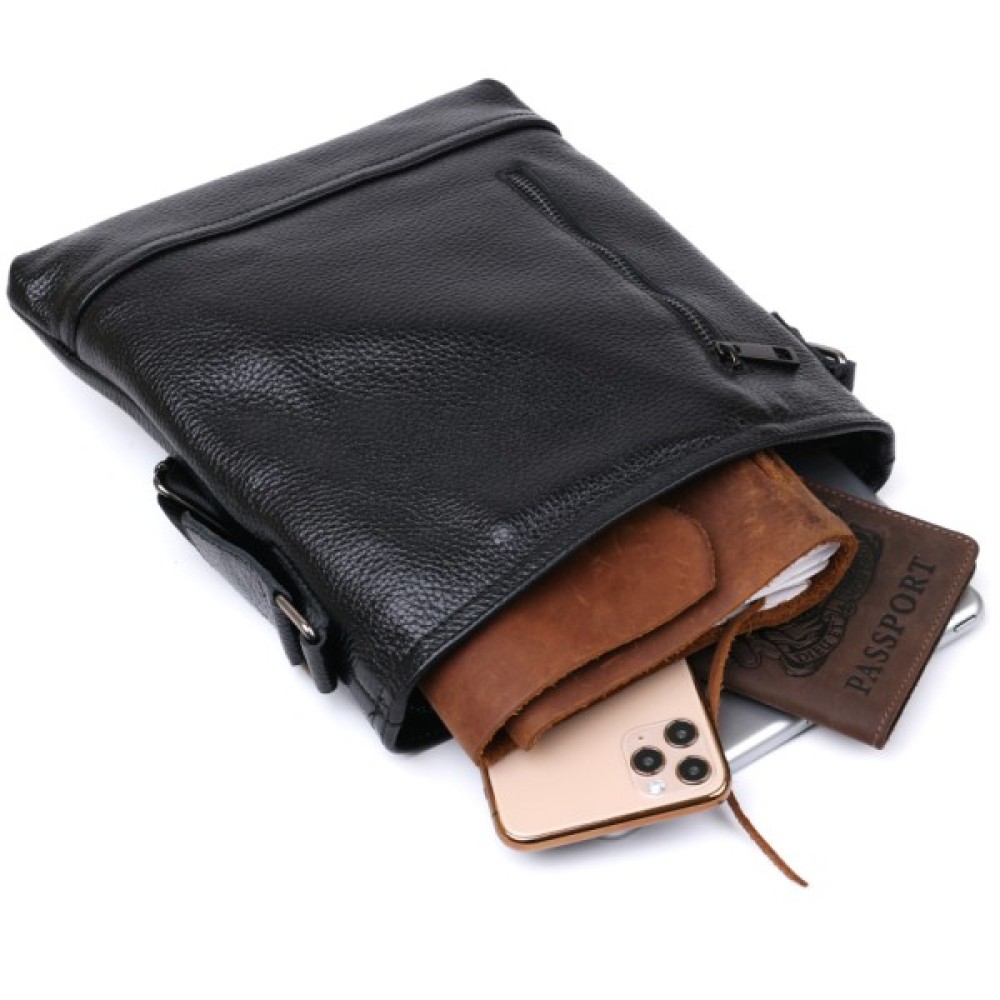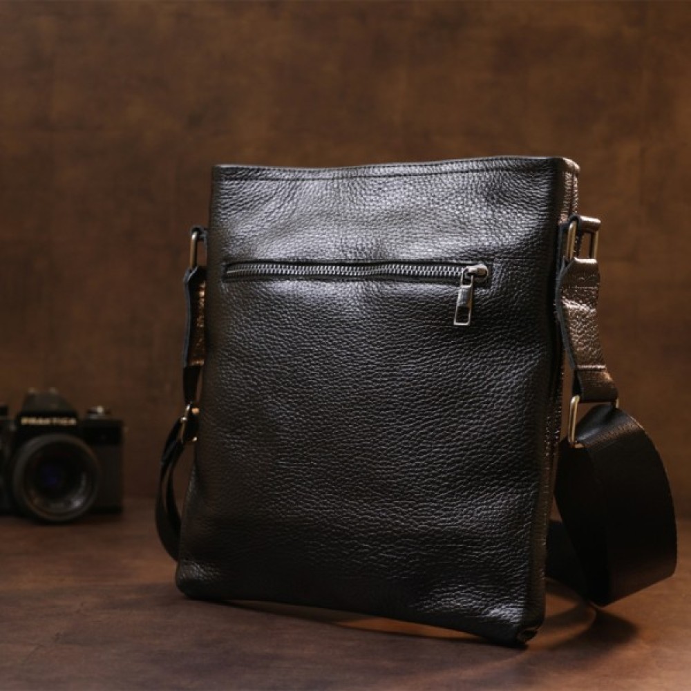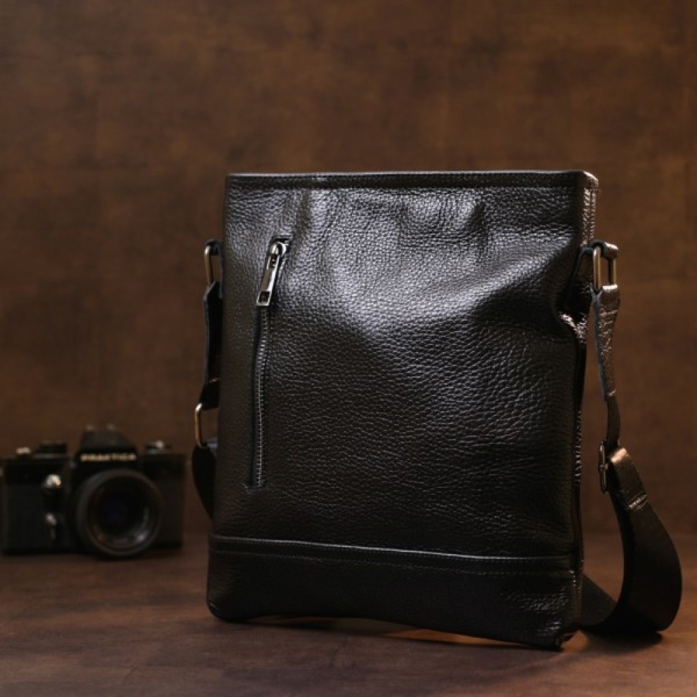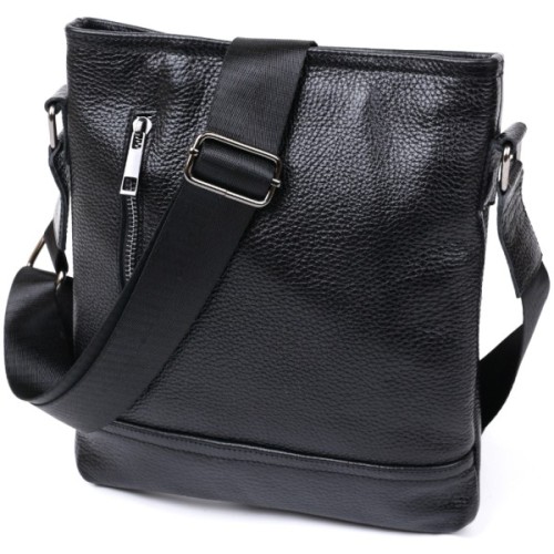 Стильна сумка для чоловіків в універсальному чорному кольорі із зернистою фактурою.