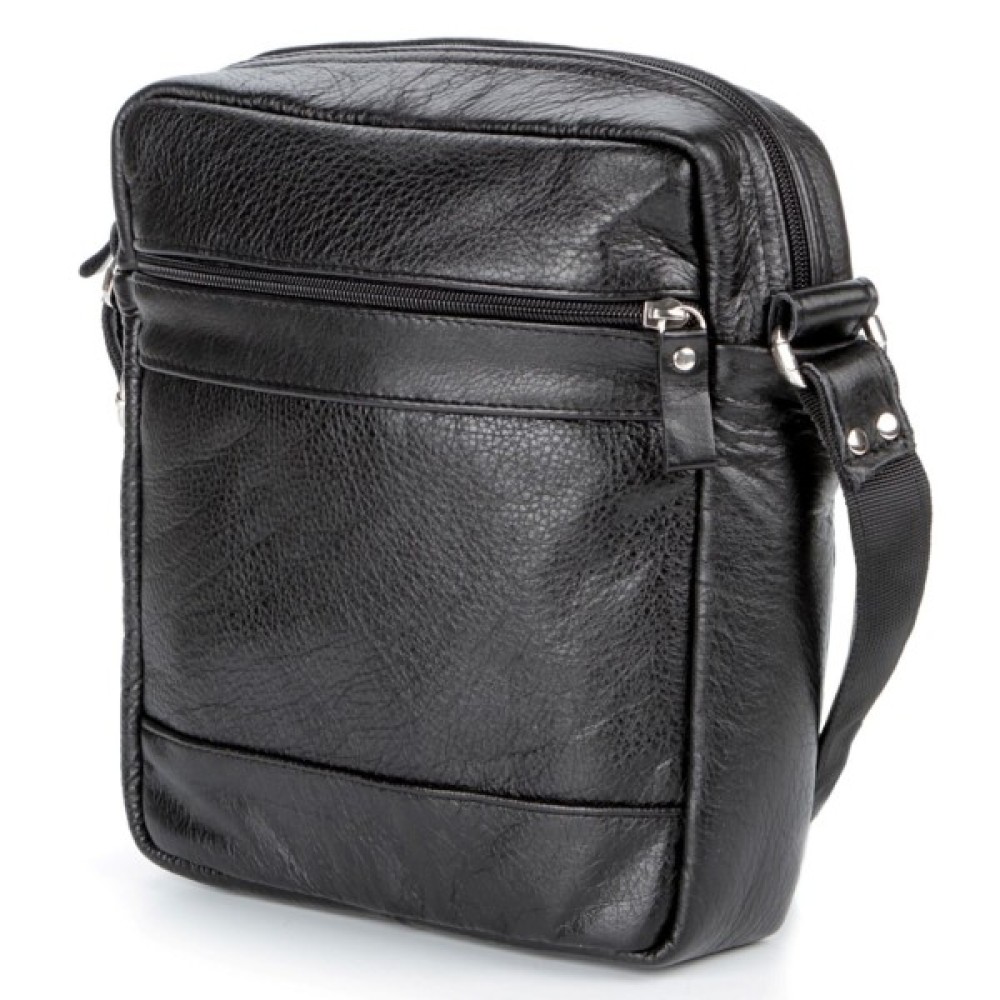 Чудова чоловіча сумка вертикального формату, виготовлена ​​з натуральної чорної шкіри. Вона ідеально поєднується як з діловим одягом, так і з повсякденним стилем. Завдяки практичності та зручності стане незамінним аксесуаром на щодень.