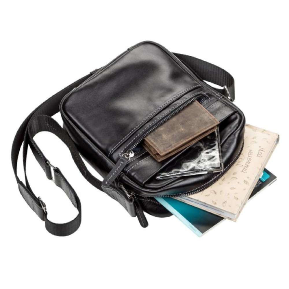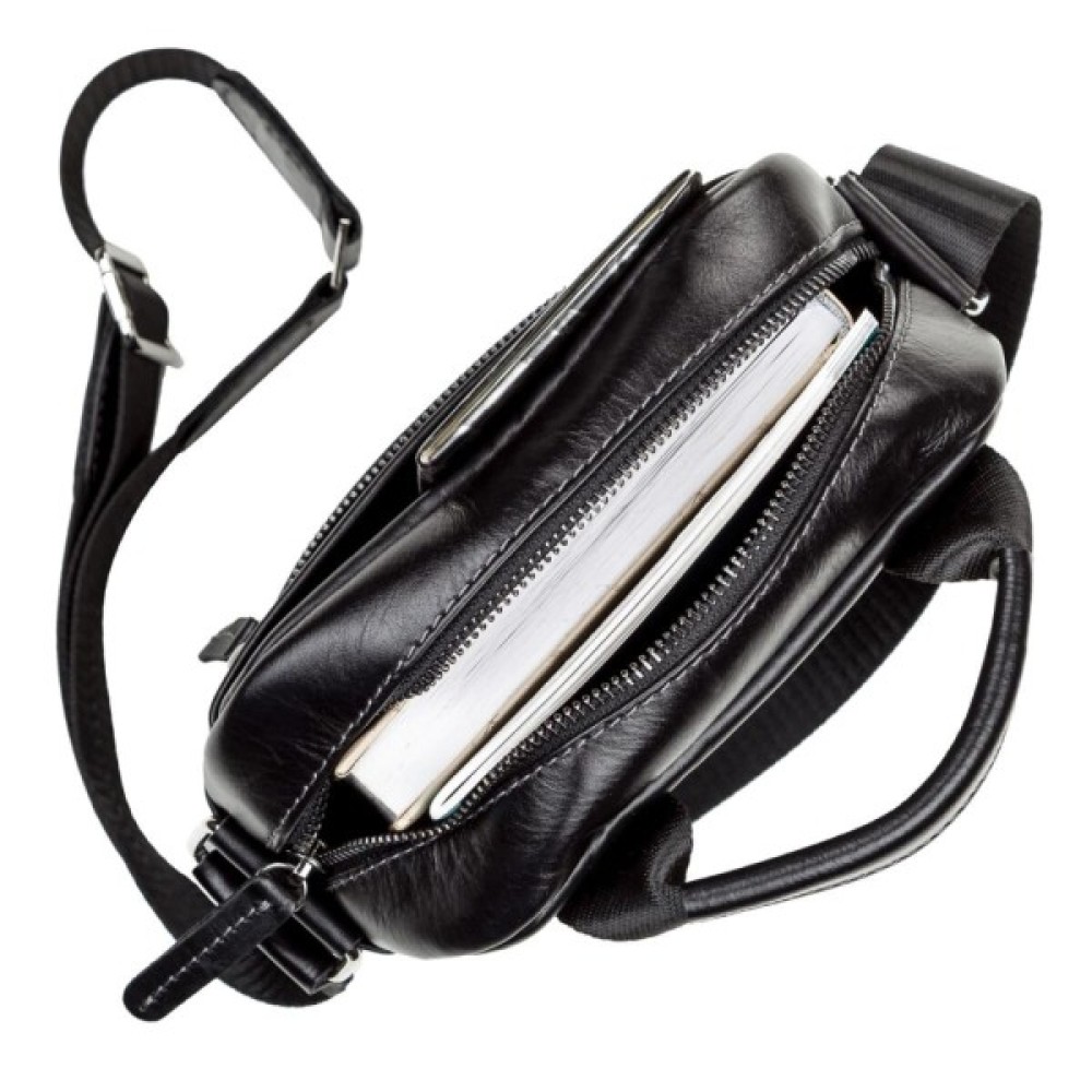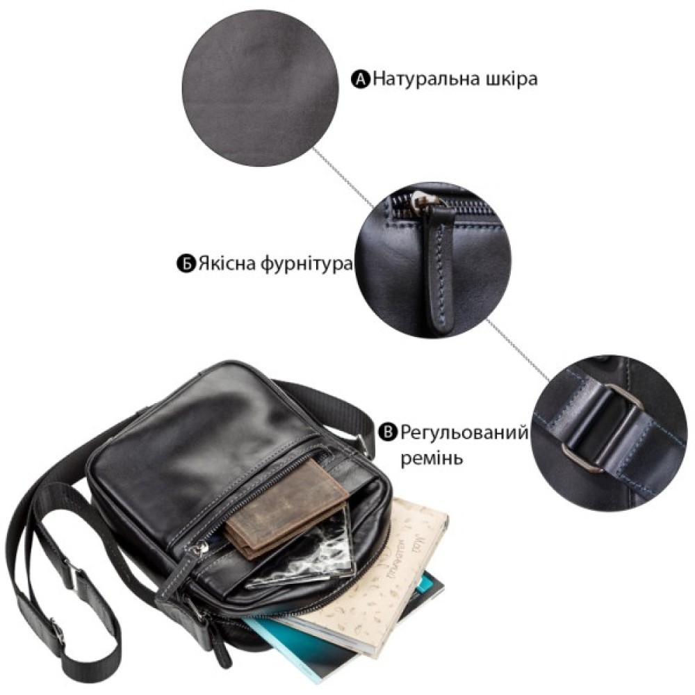 Функціональна чоловіча сумка з натуральної високоякісної гладкої шкіри.
