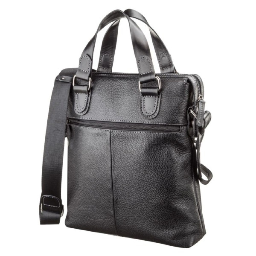 Ділова сучасна сумка з натуральної зернистої шкіри, з двома шкіряними ручками з гладкої шкіри.