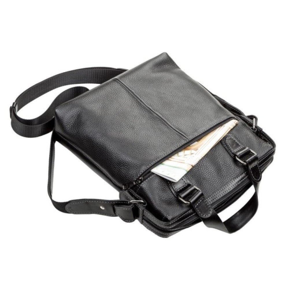 регульований плечовий ремінець; на тильній стороні кишеня на блискавці; дві шкіряні ручки; підкладка з надміцного текстильного матеріалу; вертикальна кишеня на лицьовій стороні