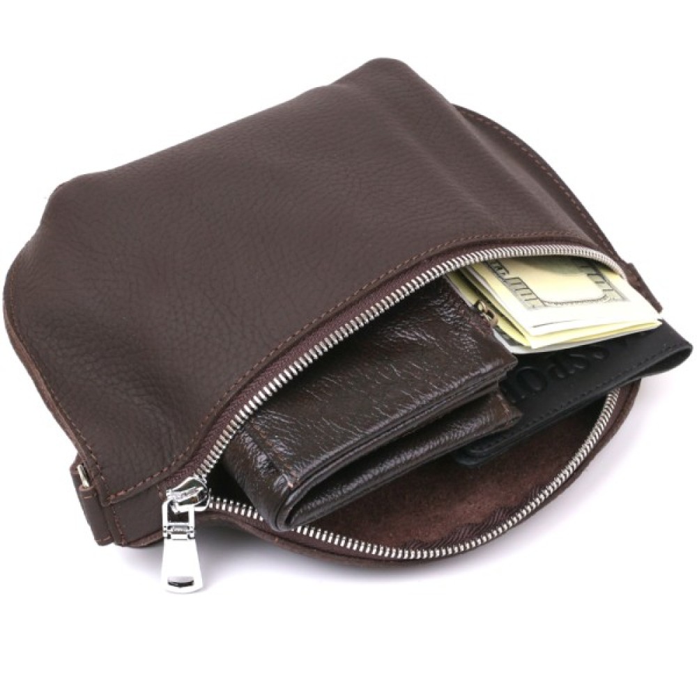Сумка, Shvigel, Шкіряна, матова, бананка, Коричнева, 16381