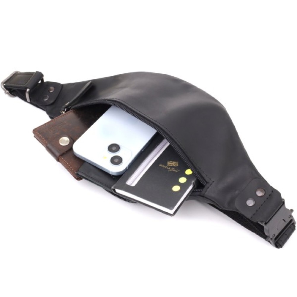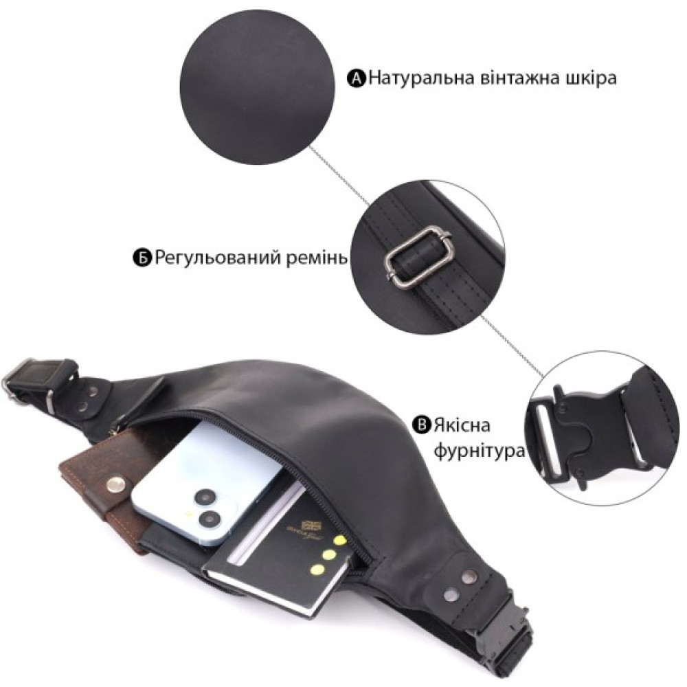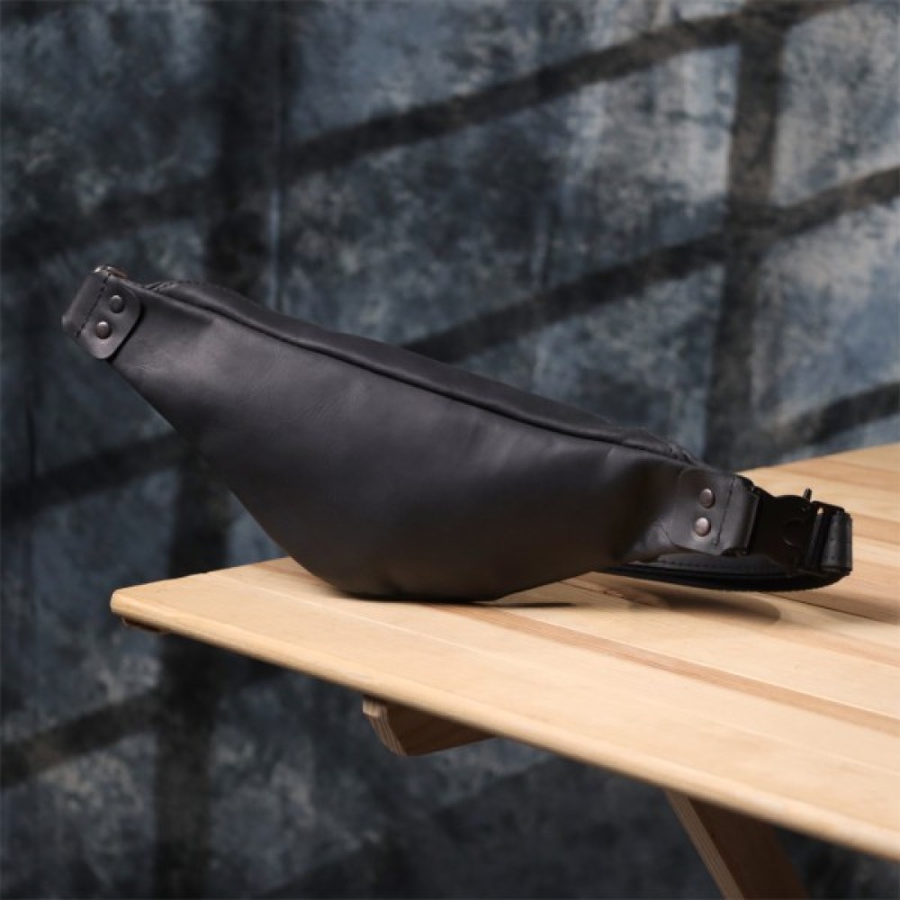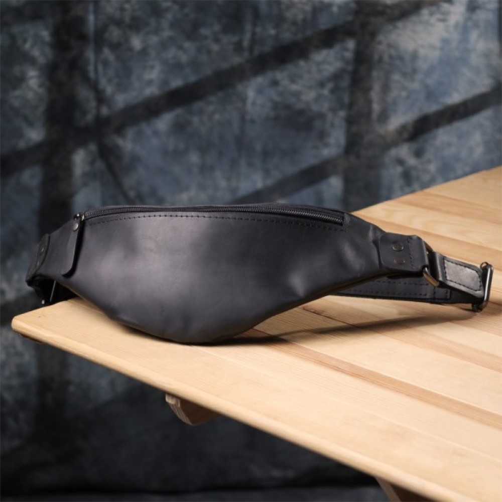Чоловіча сумка-бананка з вінтажної шкіри в чорному кольорі — це стиль, перевірений часом.