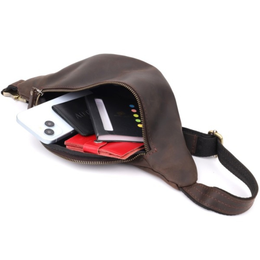 Компактна, але містка конструкція дозволяє зручно розташувати документи, гаманець, ключі та смартфон. Ремінь можна регулювати і носити через плече або на поясі.