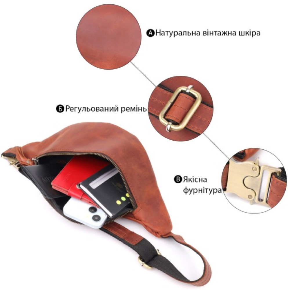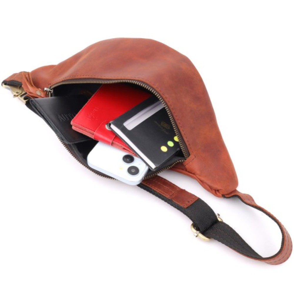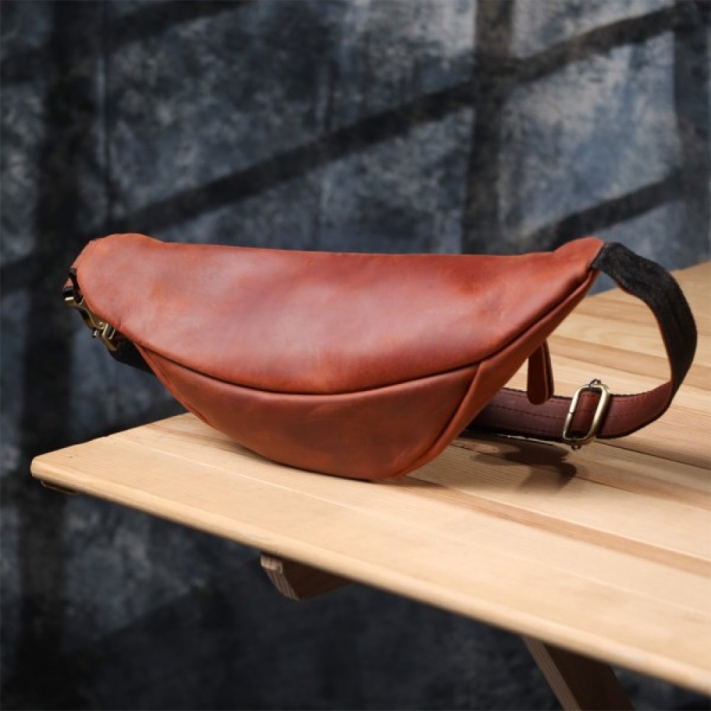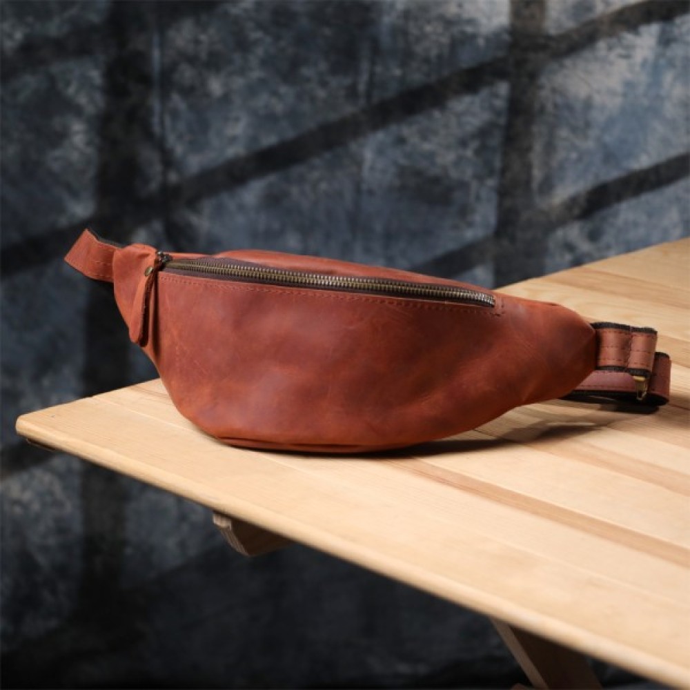 Сумка-бананка з натуральної шкіри Shvigel у рудому кольорі – теплий акцент та вінтажний стиль.