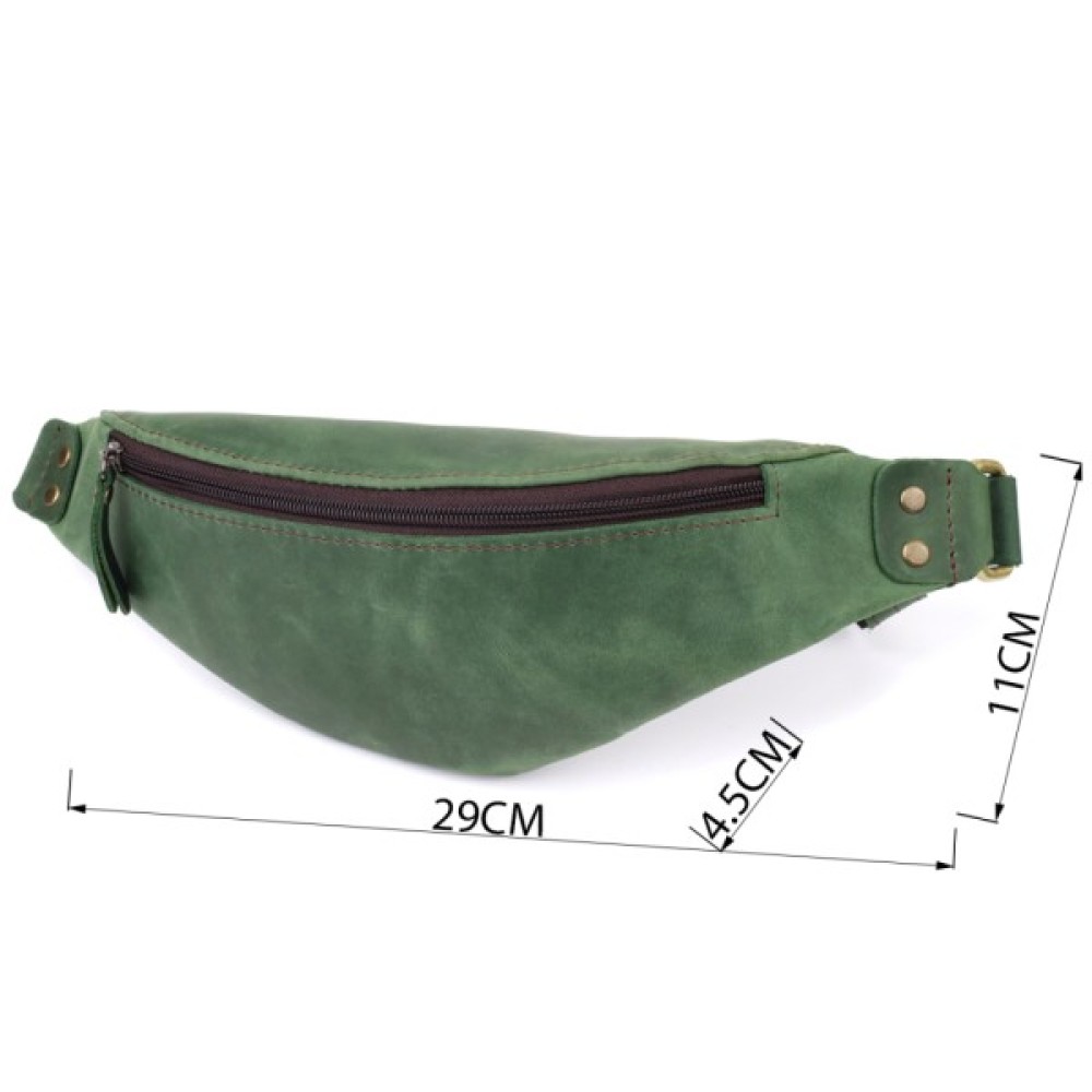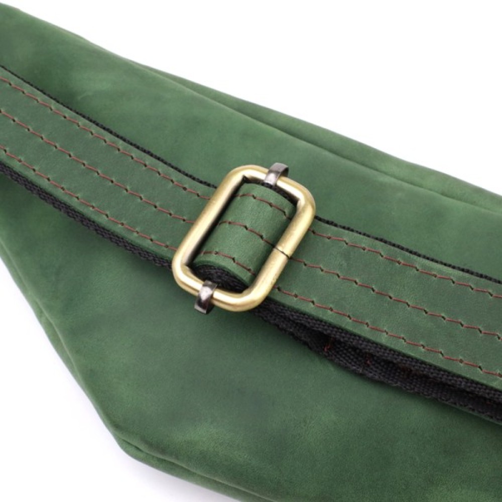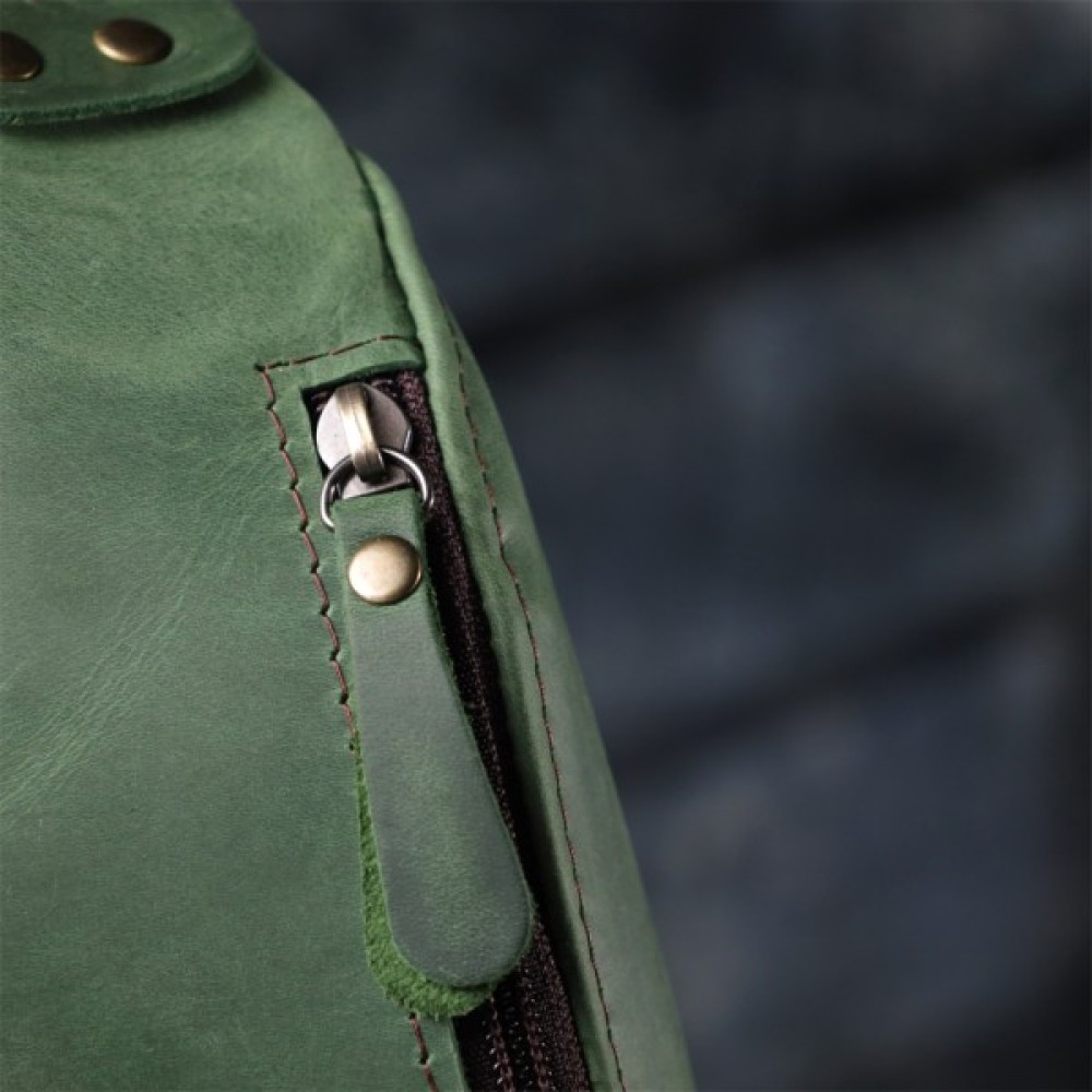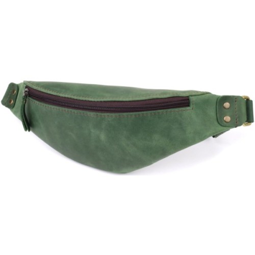 Виконана з натуральної вінтажної шкіри, бананка вирізняється глибоким зеленим відтінком, який підкреслює унікальність виробу та робить образ виразнішим.