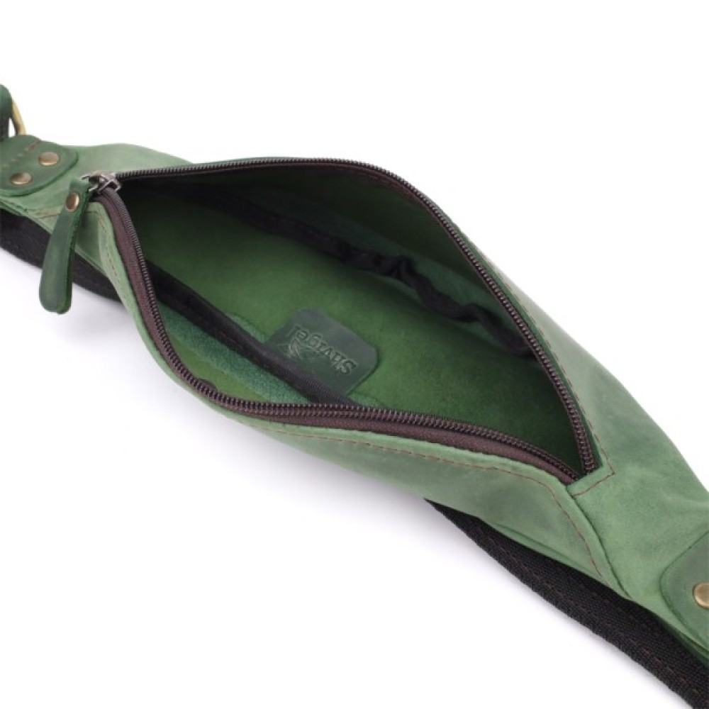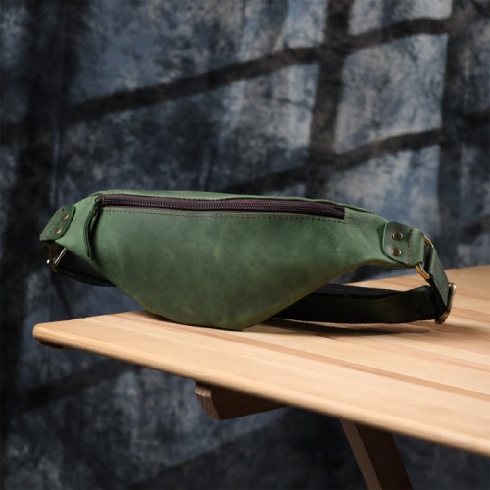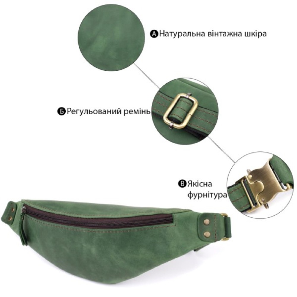 Сумка-бананка Shvigel із вінтажної шкіри у насиченому зеленому кольорі – поєднання зручності, стилю та індивідуальності.