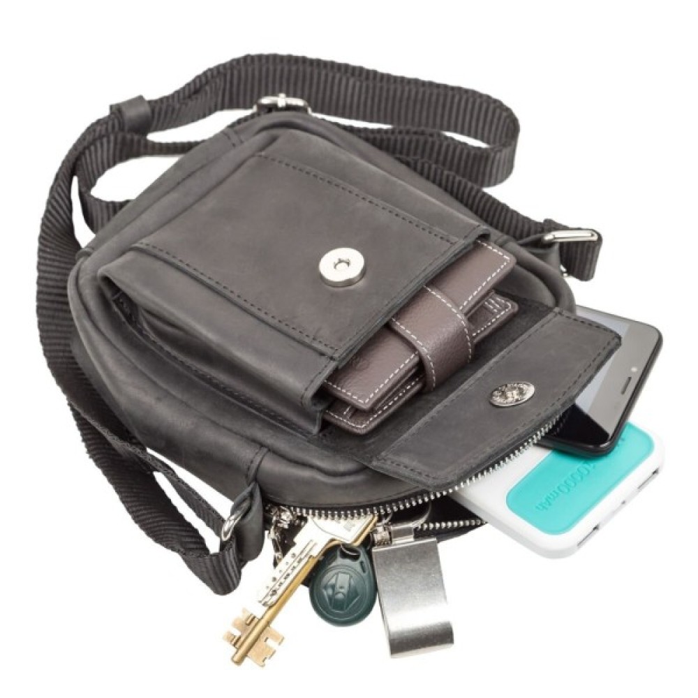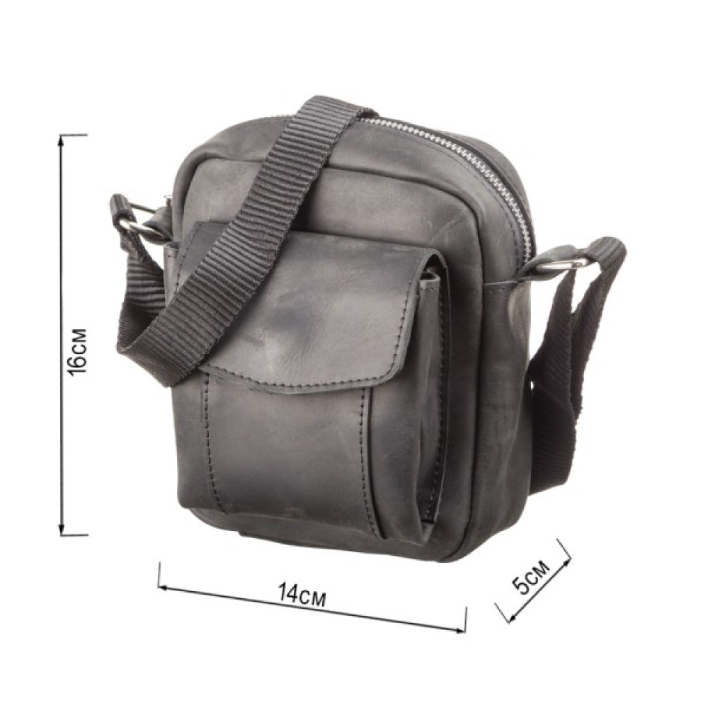 Для виробництва використовували шкіру Crazy horse, особливістю якої є потертості і неоднорідність забарвлення. Сумочка компактна, але в свою чергу, досить вмістка. З легкістю вміщує: телефон, документи, ключі.