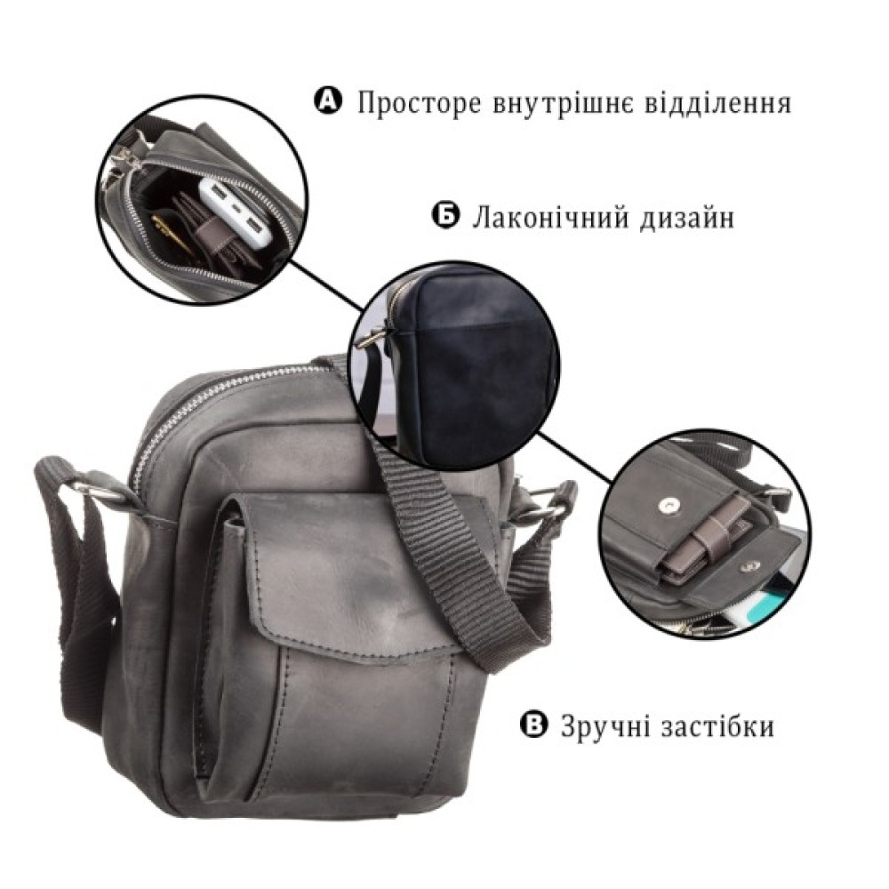 Компактна сумочка невеликих розмірів, виготовлена повністю з натуральної шкіри без текстильної підкладки.