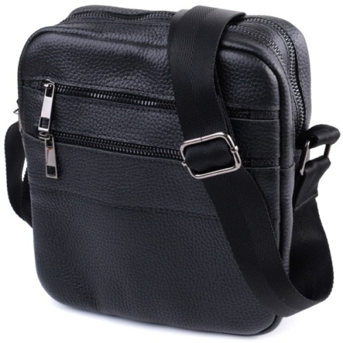 Чудова чоловіча сумка вертикального формату, виготовлена з натуральної зернистої шкіри чорного кольору.