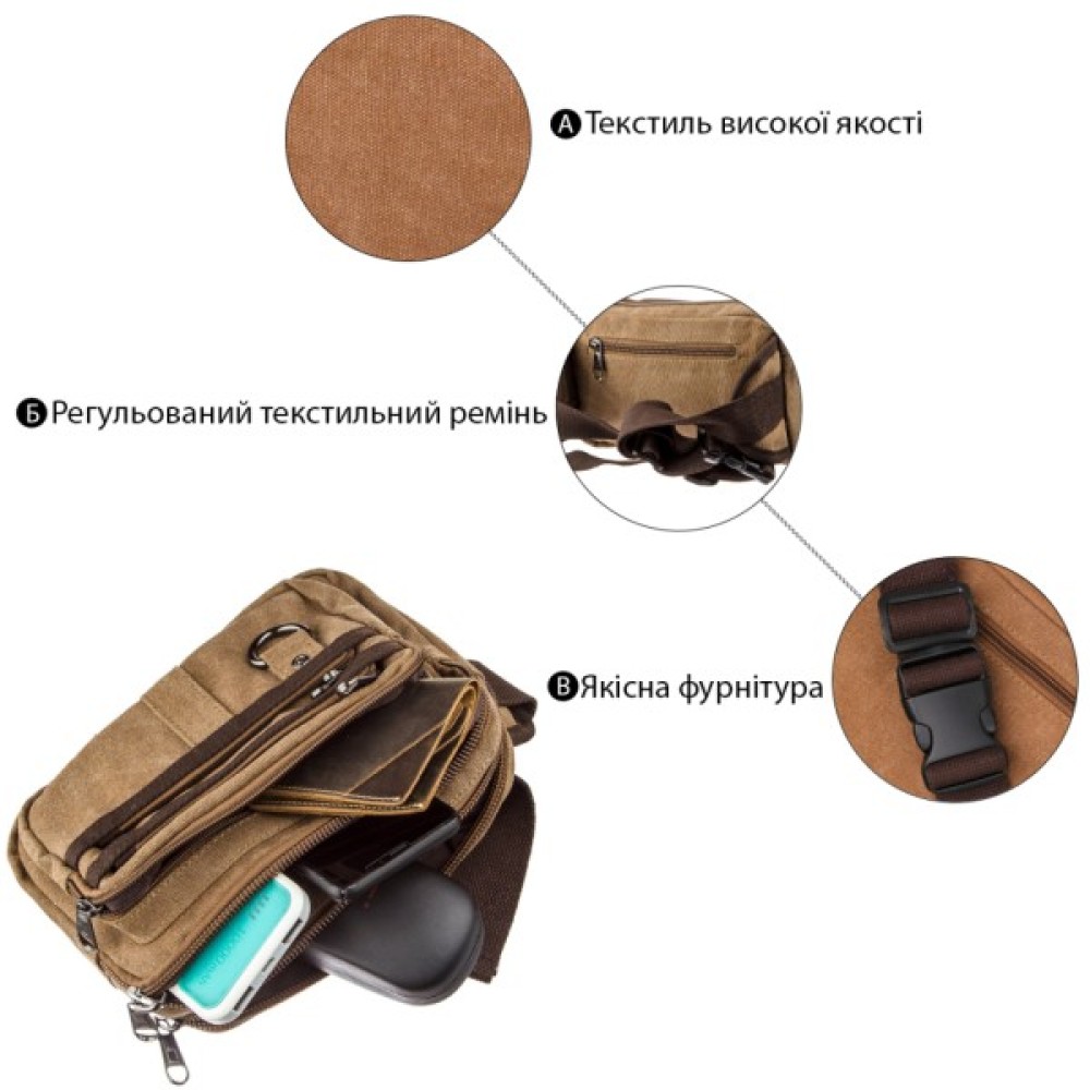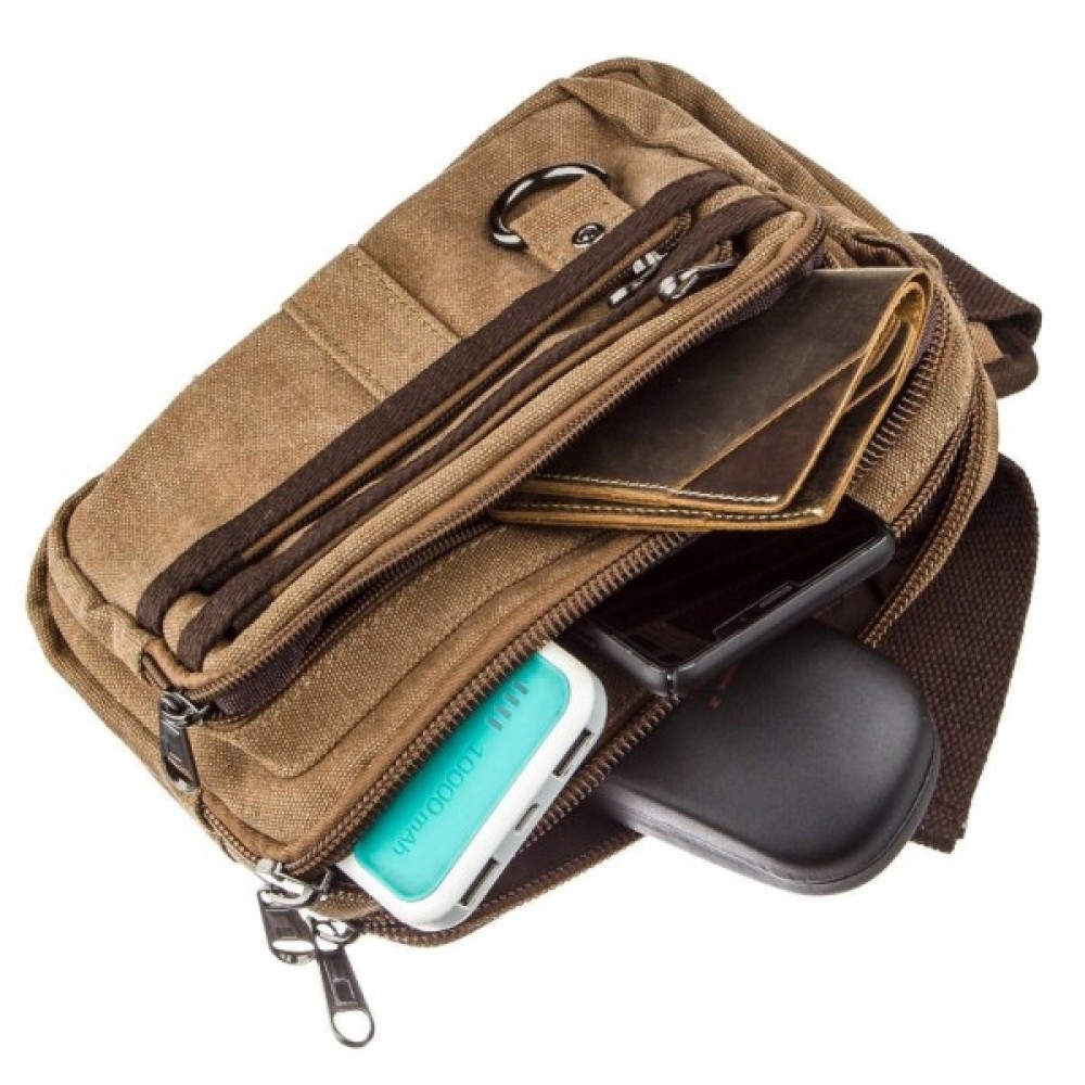 Сумка Vintage Бананка текстильна на пояс Коричнева (20160)