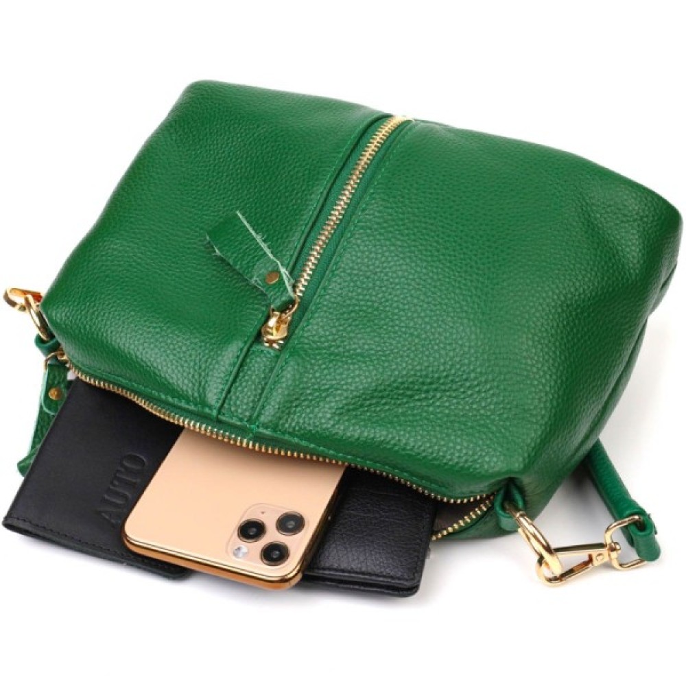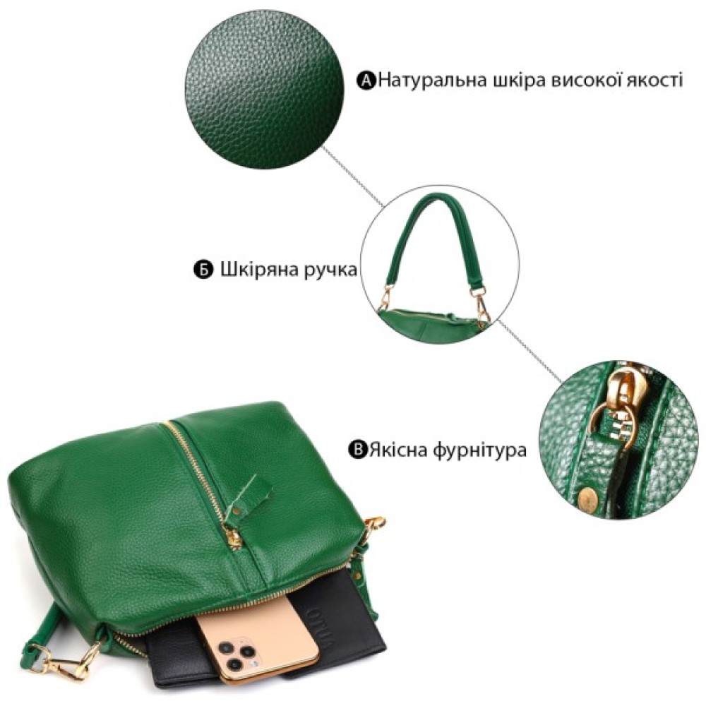 Через плече із натуральної шкіри Зелена