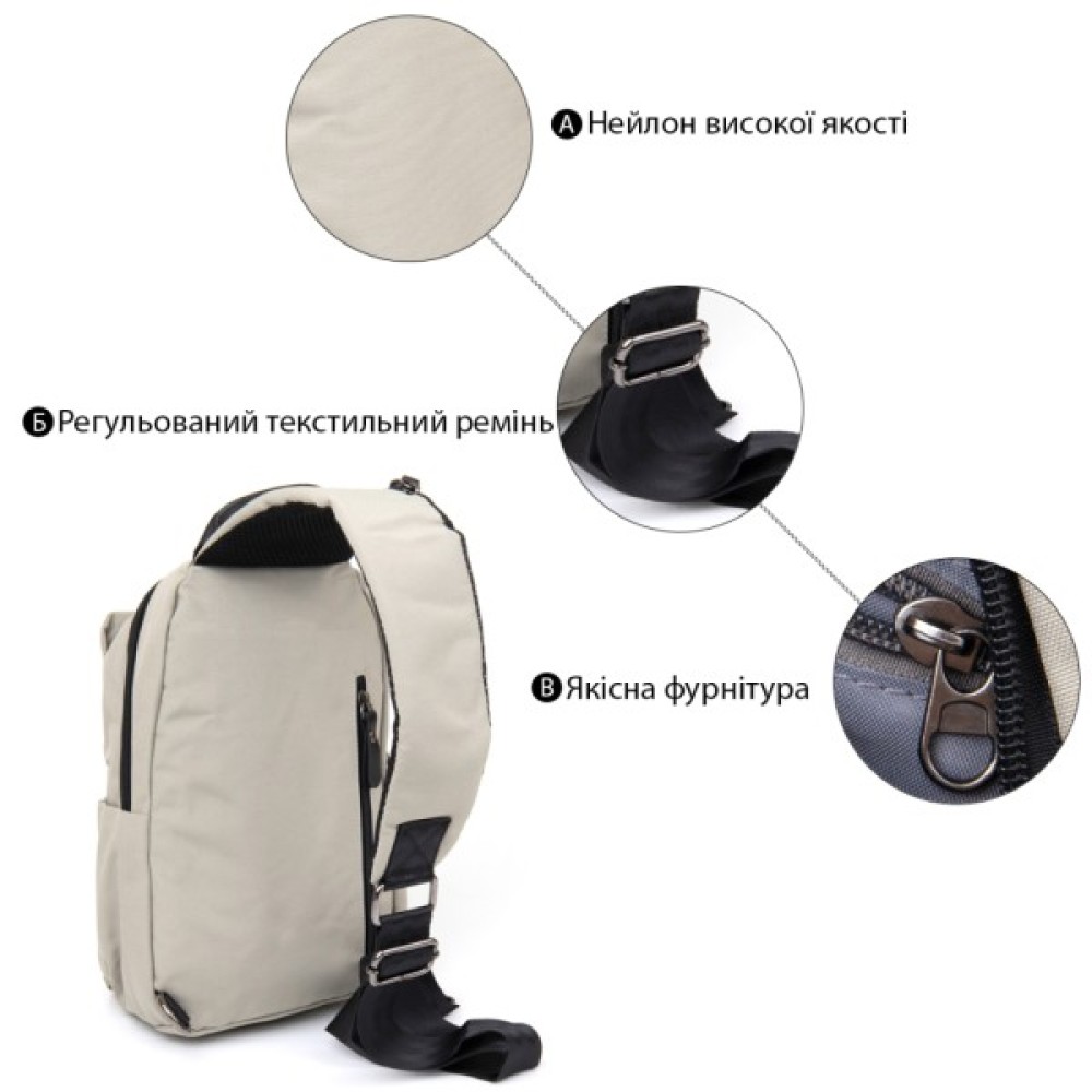 Модель: Через плече нейлон Світло-сіра