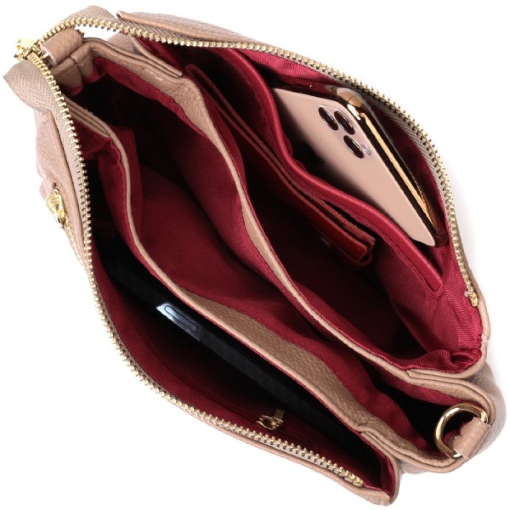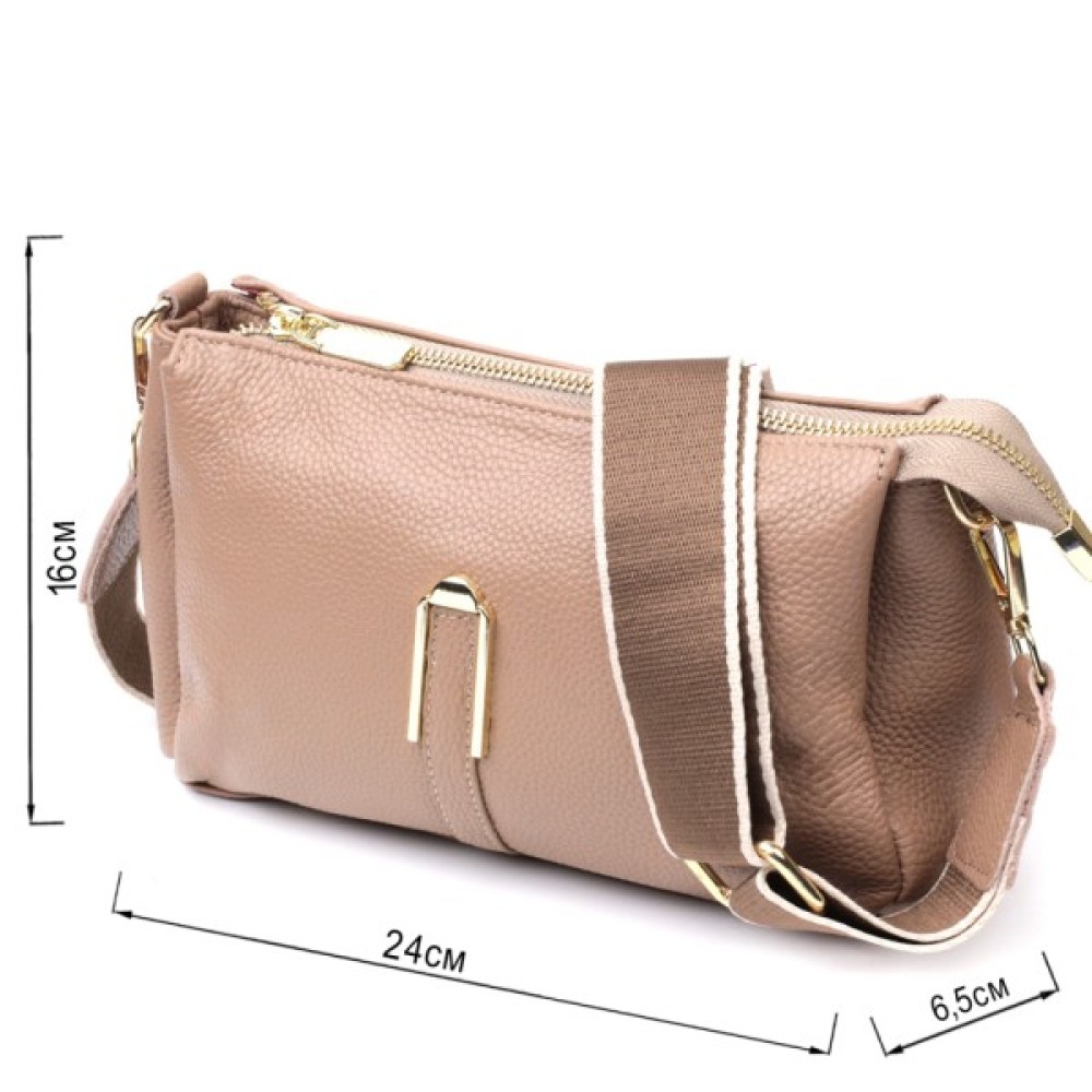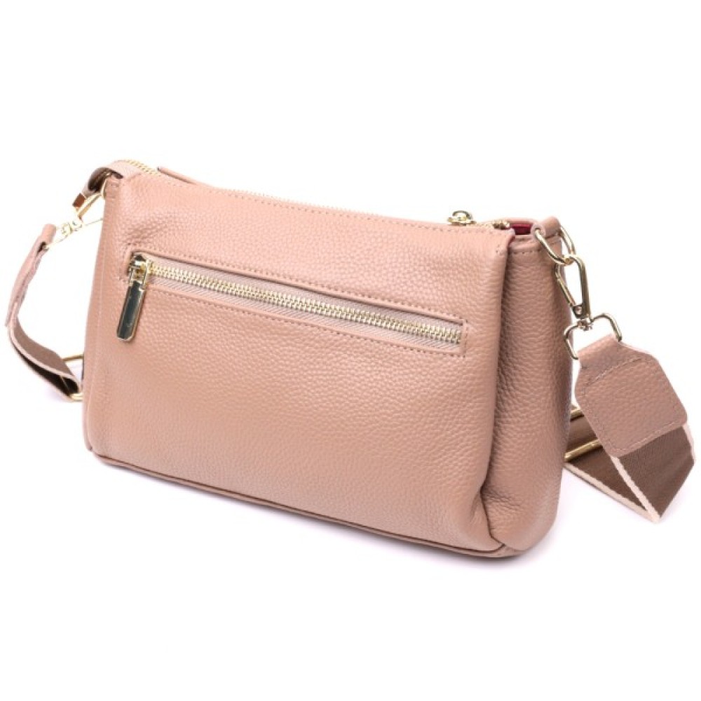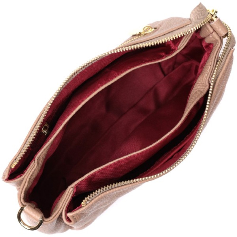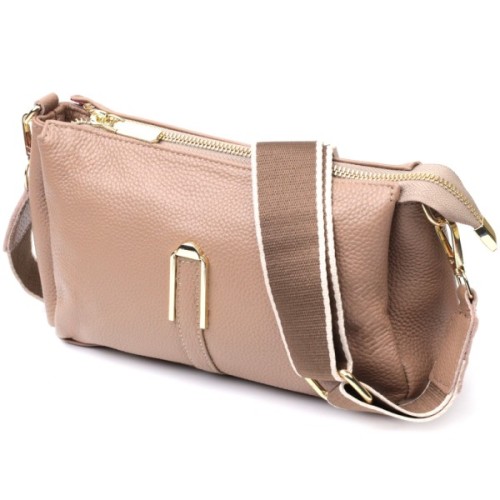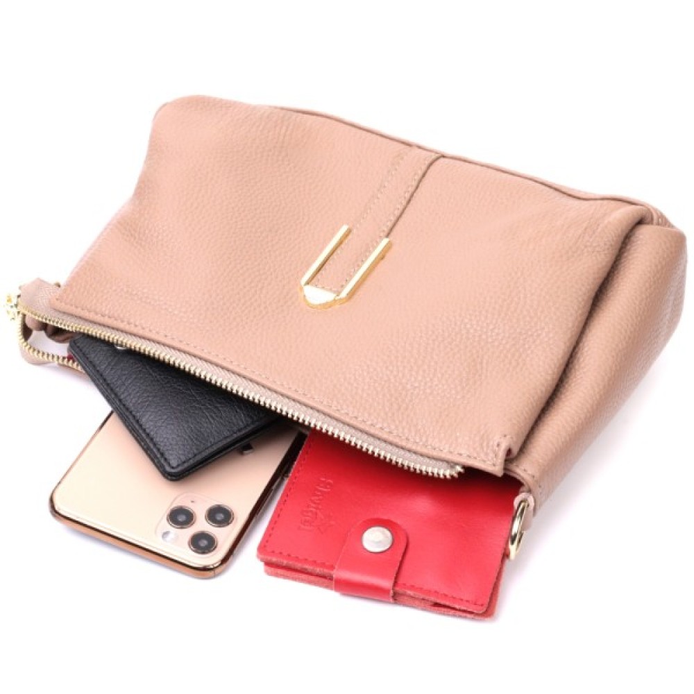 Цікава сумка світло-бежевого кольору з легкою рожевинкою з натуральної шкіри з високим показником якості та зносостійкості.