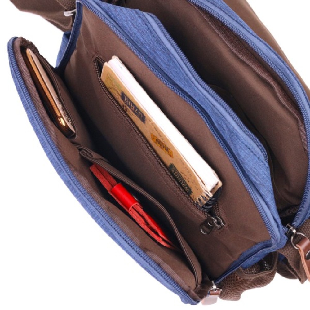 Містка чоловіча сумка із міцного текстилю. Аксесуар має два основні відділення, п'ять внутрішніх кишень різних розмірів, один із яких із сітки. У сумку поміститься досить багато речей, а наявність кишень допоможе вам ідеально їх розкласти. Сумка чудово поєднується зі стилем кежуал, а також мілітарі. Модель дуже практична та універсальна. Виріб стане чудовим подарунком для будь-якого чоловіка.