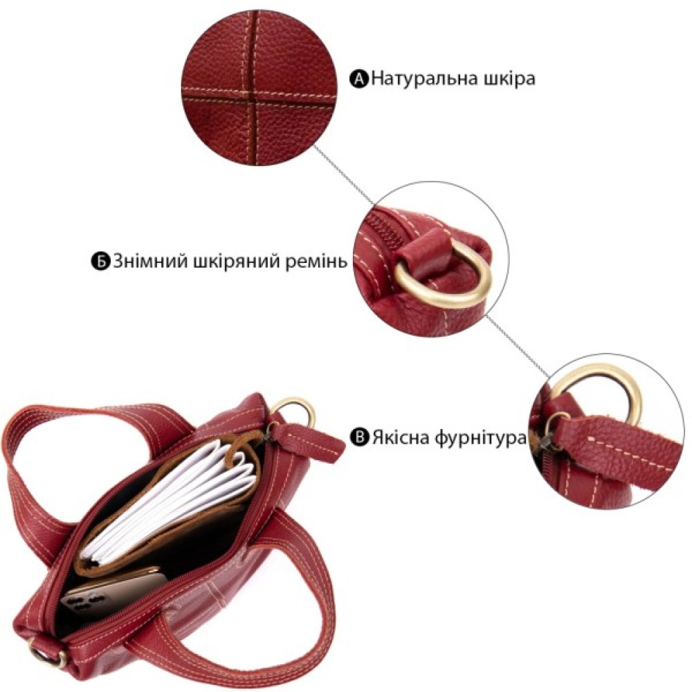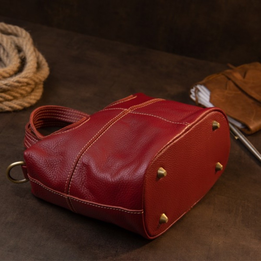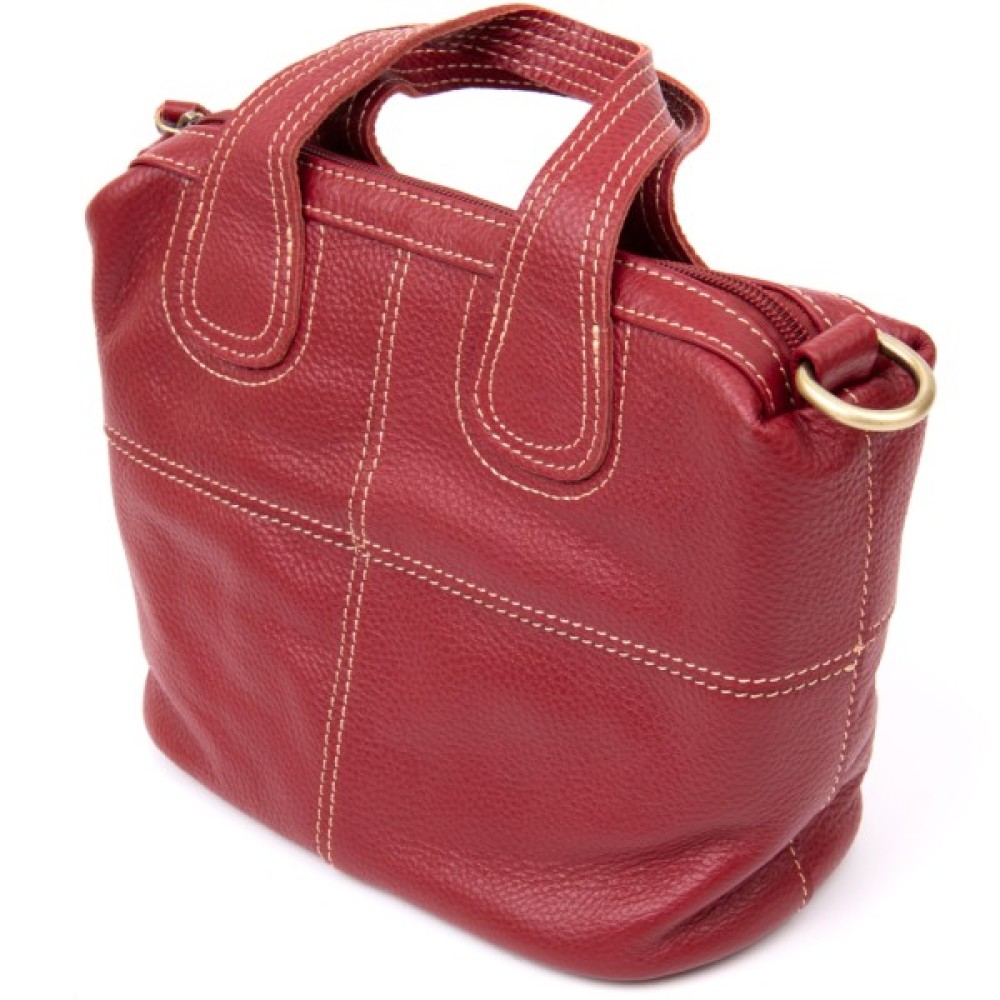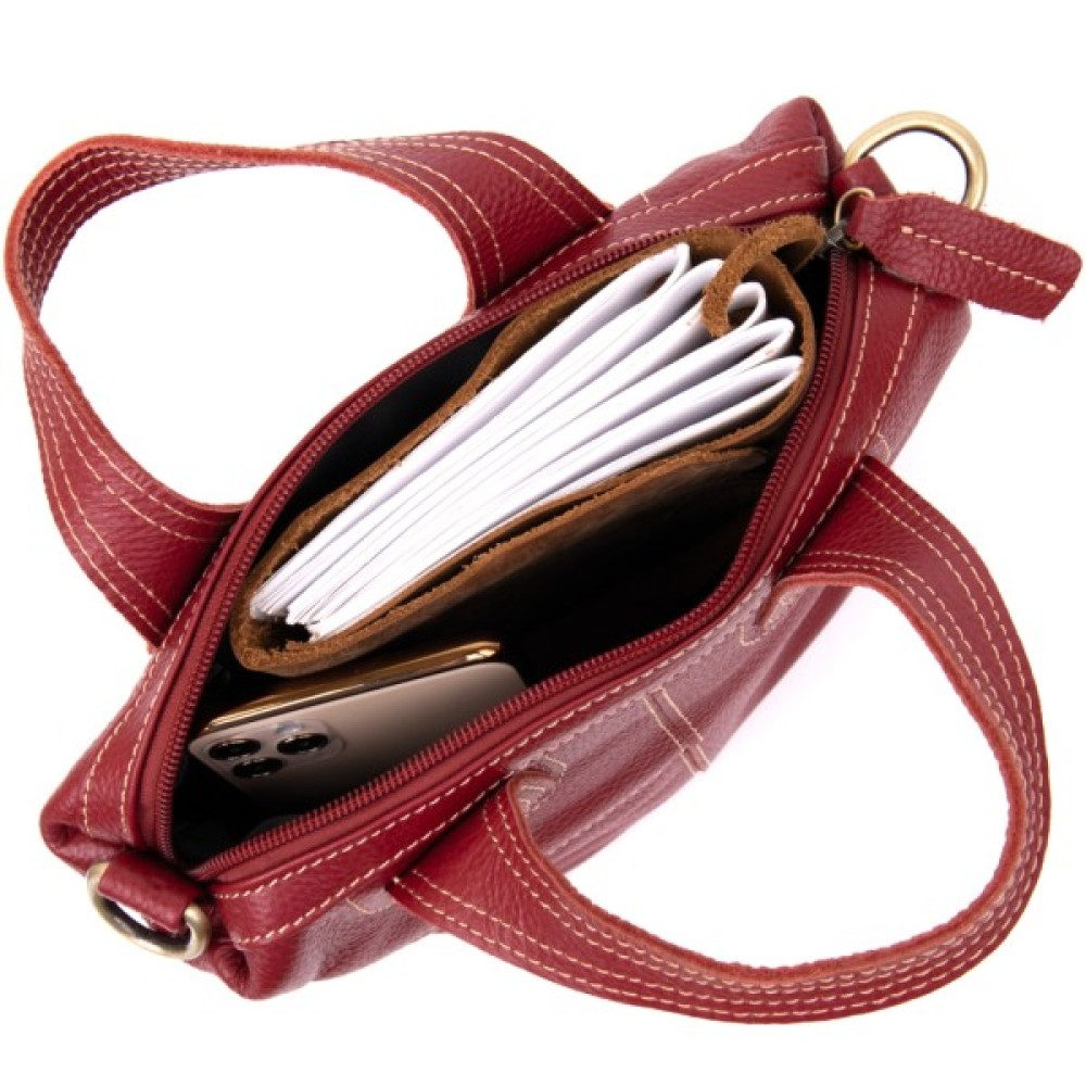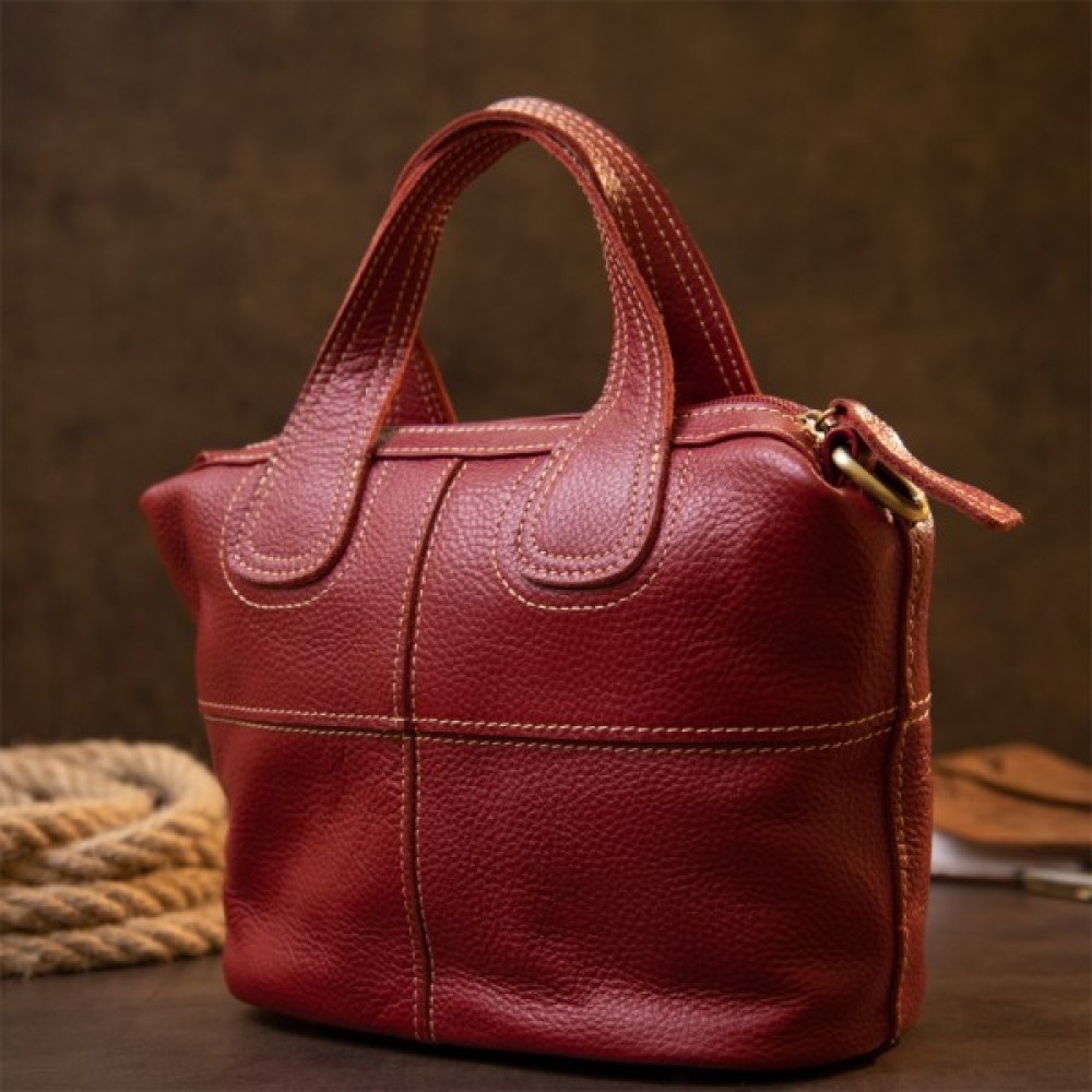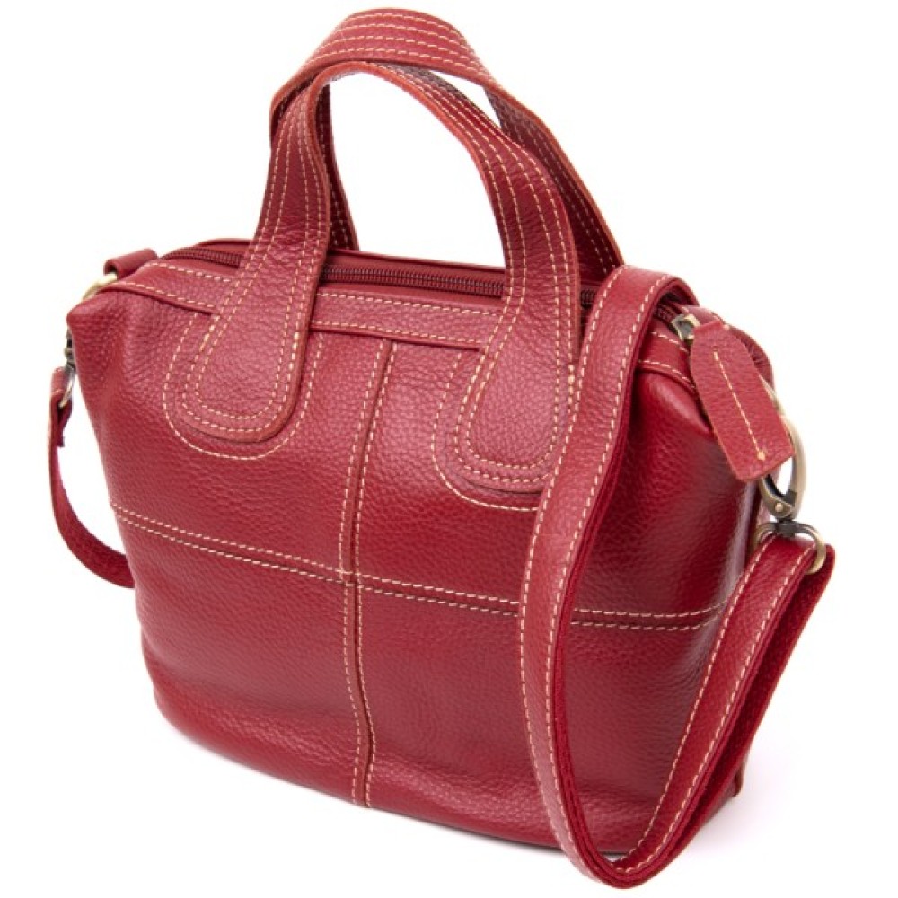 Компактна жіноча сумка з натуральної шкіри зі світлою ниткою в дизайні. Сумка для яскравих і впевнених у собі особистостей. Модель в яскравому і насиченому червоному кольорі. Виріб в шкірі флотар, яка зовсім невибаглива в догляді. Знизу сумки металеві вставки для захисту днища сумки. Сумка має весь необхідний функціонал. Виріб підійде як на кожен день, так і для вечірнього образу. Сумку можна носити в руках і за допомогою знімного ремінця на плечі. Шкіряна сумка – кращий подарунок для будь-якої дівчини.