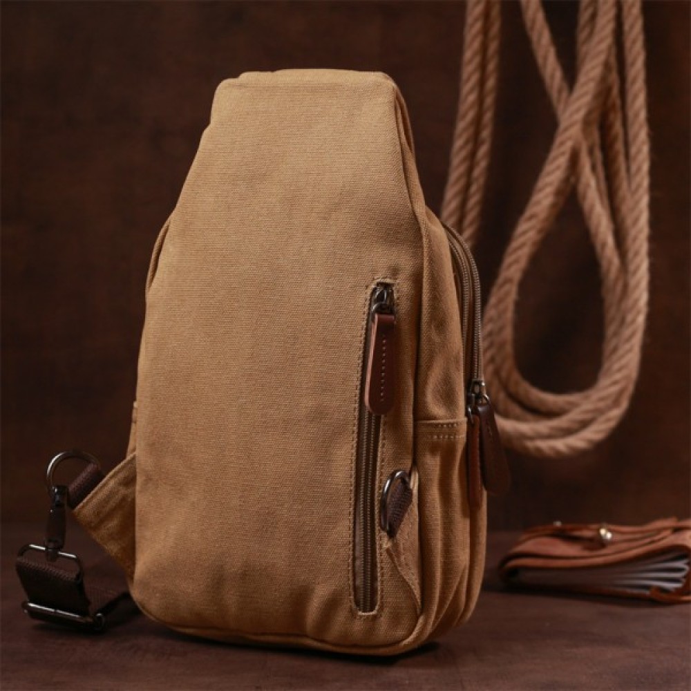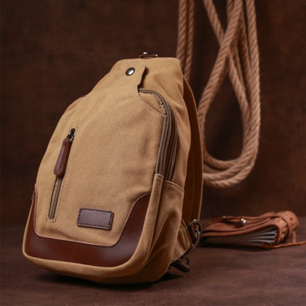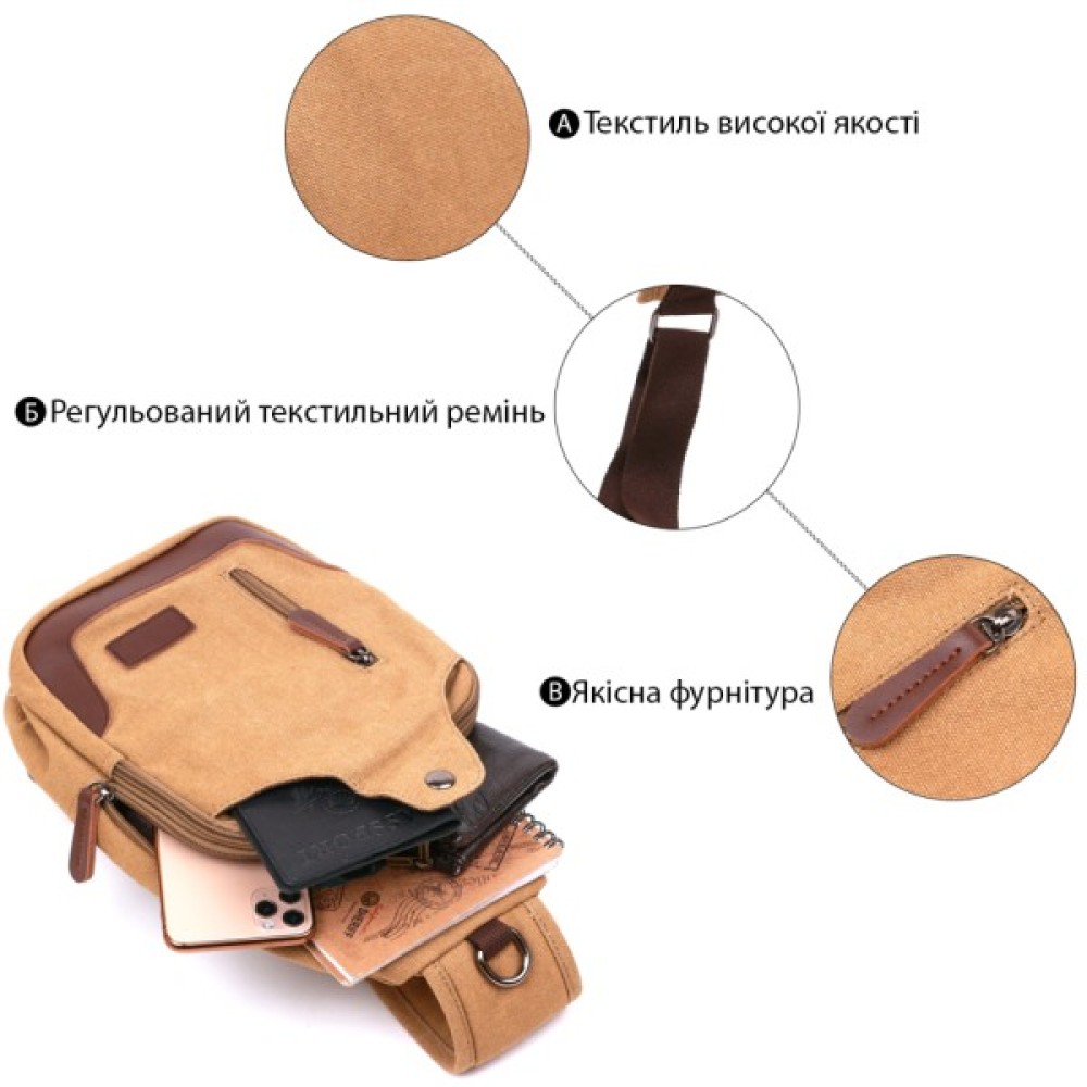 Чудова та багатофункціональна чоловіча сумка крос-боді для чоловіків будь-якого віку. Матеріал виготовлення – високоміцний текстиль, який стійкий до зношування під час експлуатації. Колір виробу – пісочний із коричневими шкіряними вставками. Для Вашої зручності в сумці є просторі та місткі відділення та кишені, тому все необхідне буде під надійним захистом.