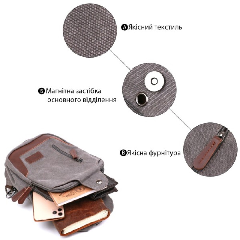 Невелика, але містка сумка крос-боді для активних чоловіків у стильному дизайні. Виконана дана модель із міцного та надійного у використанні текстилю. Усередині є багатофункціональні кишені та просторі відділення. Для зручності передбачена можливість перенавішування ременя на ліву або праву сторону, згідно з Вашими уподобаннями.