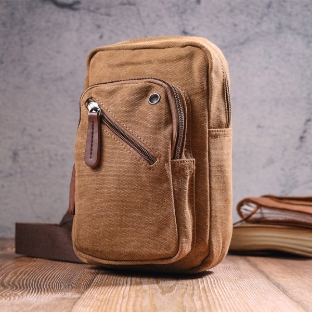 Сумка Vintage Чоловіча через плече текстильна Коричнева (21230)