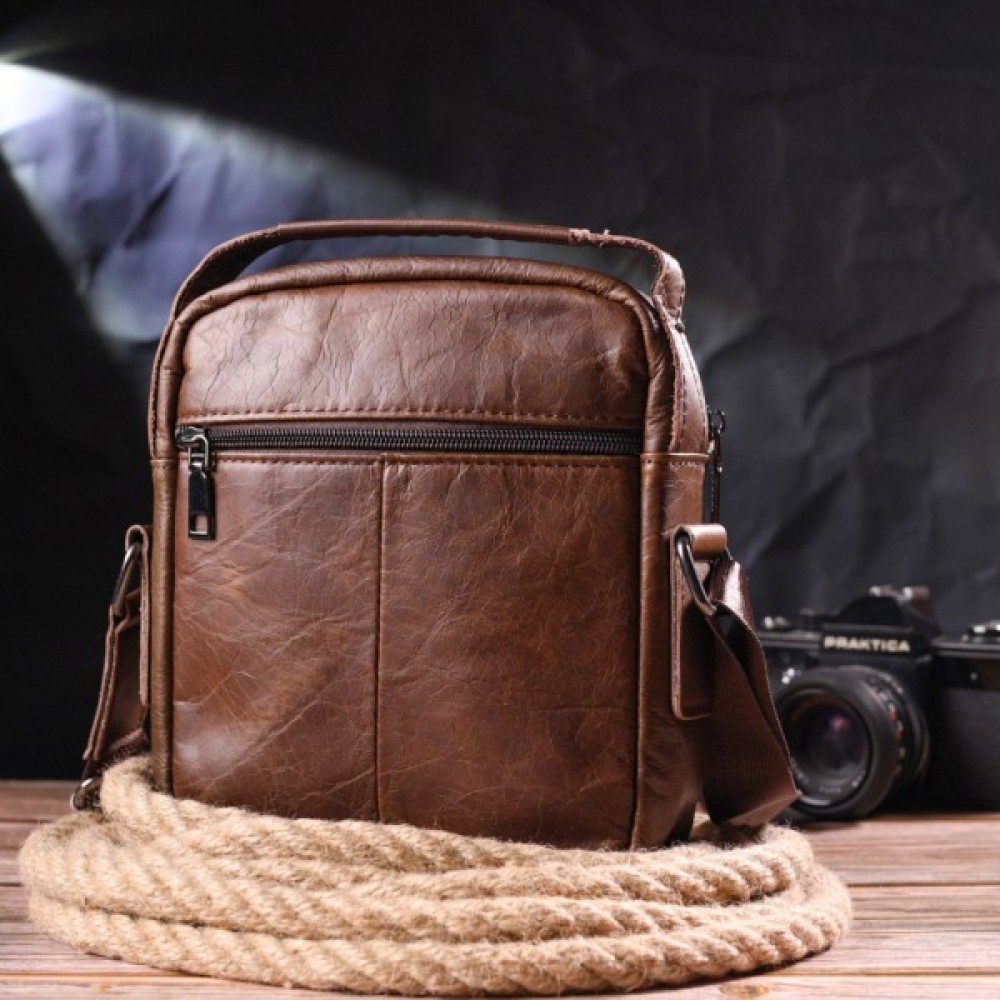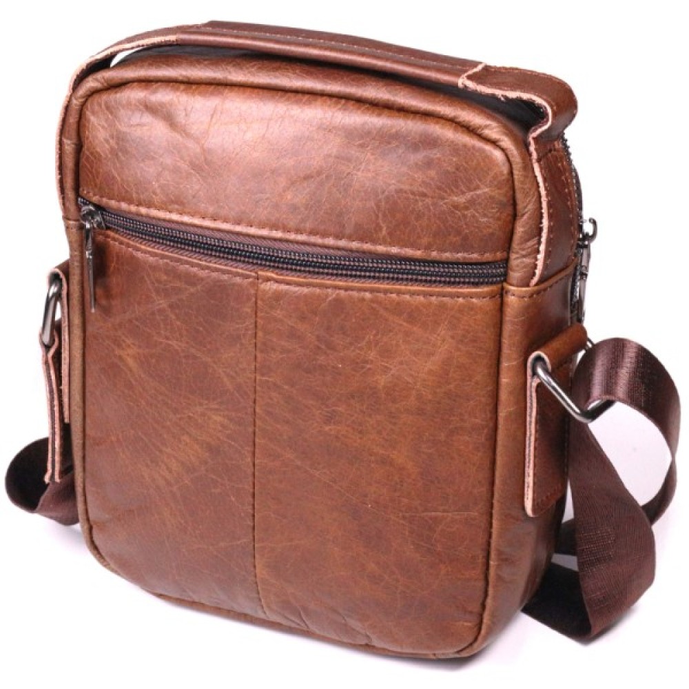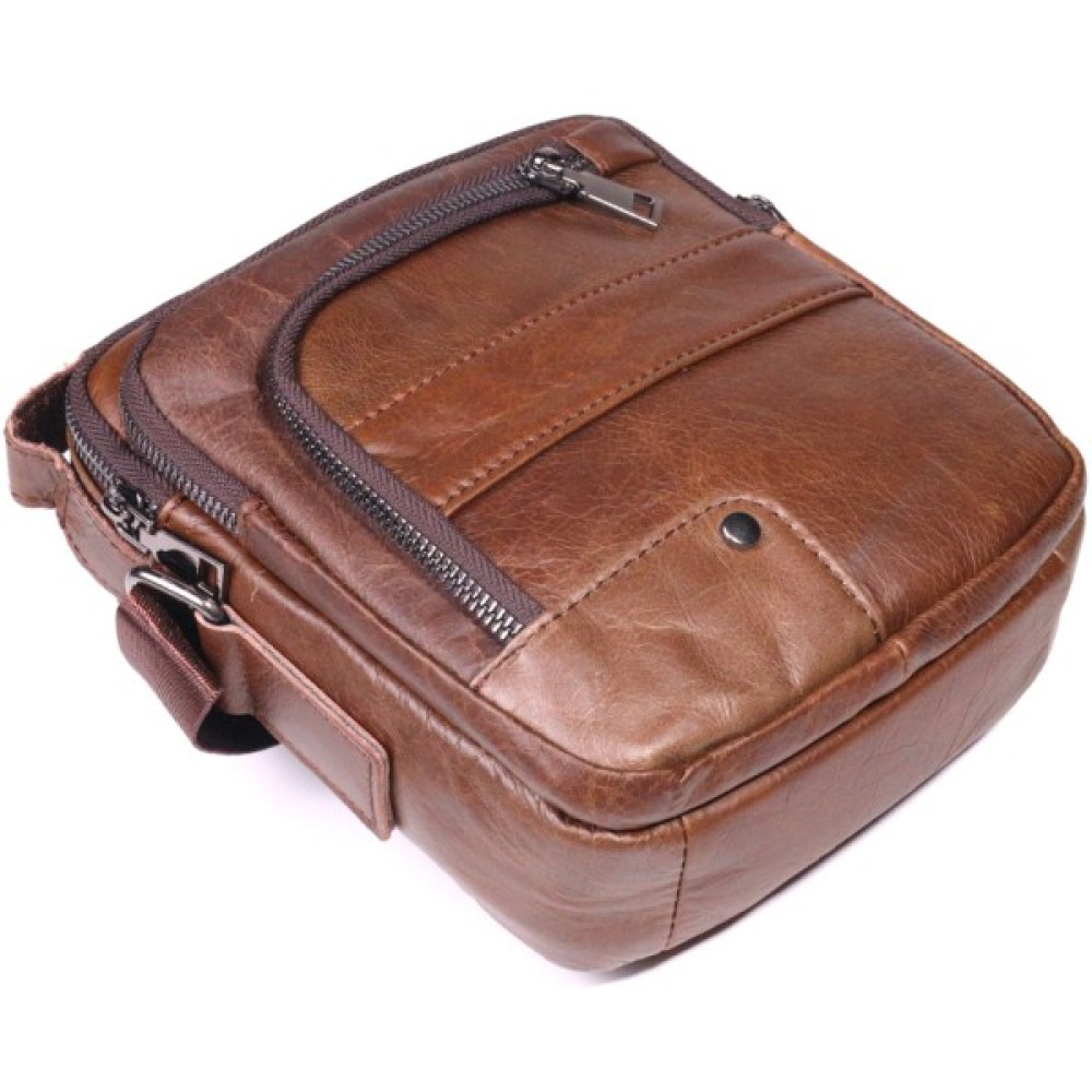 Сумка Vintage Чоловіча через плече з натуральної шкіри Світло-коричнева (21480)