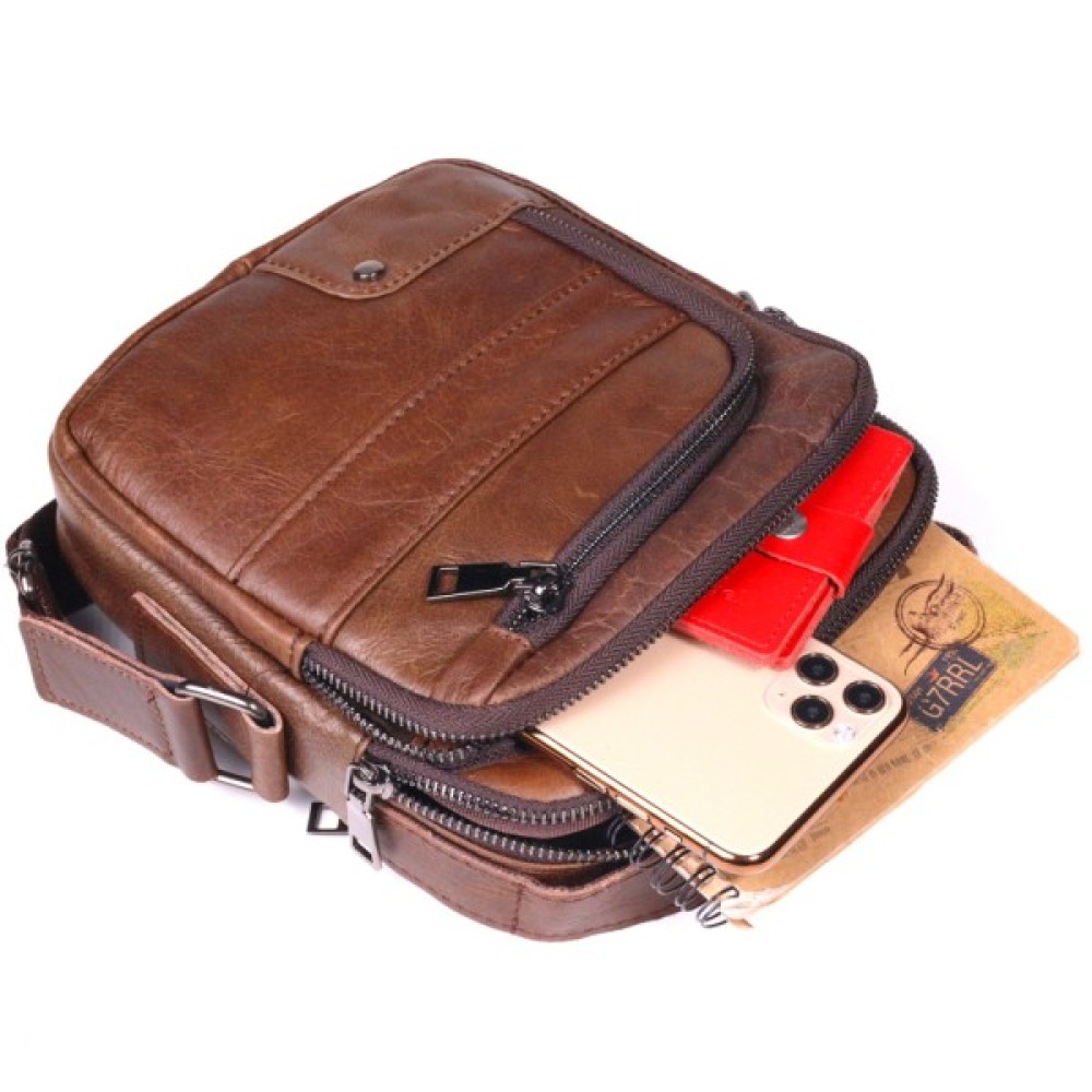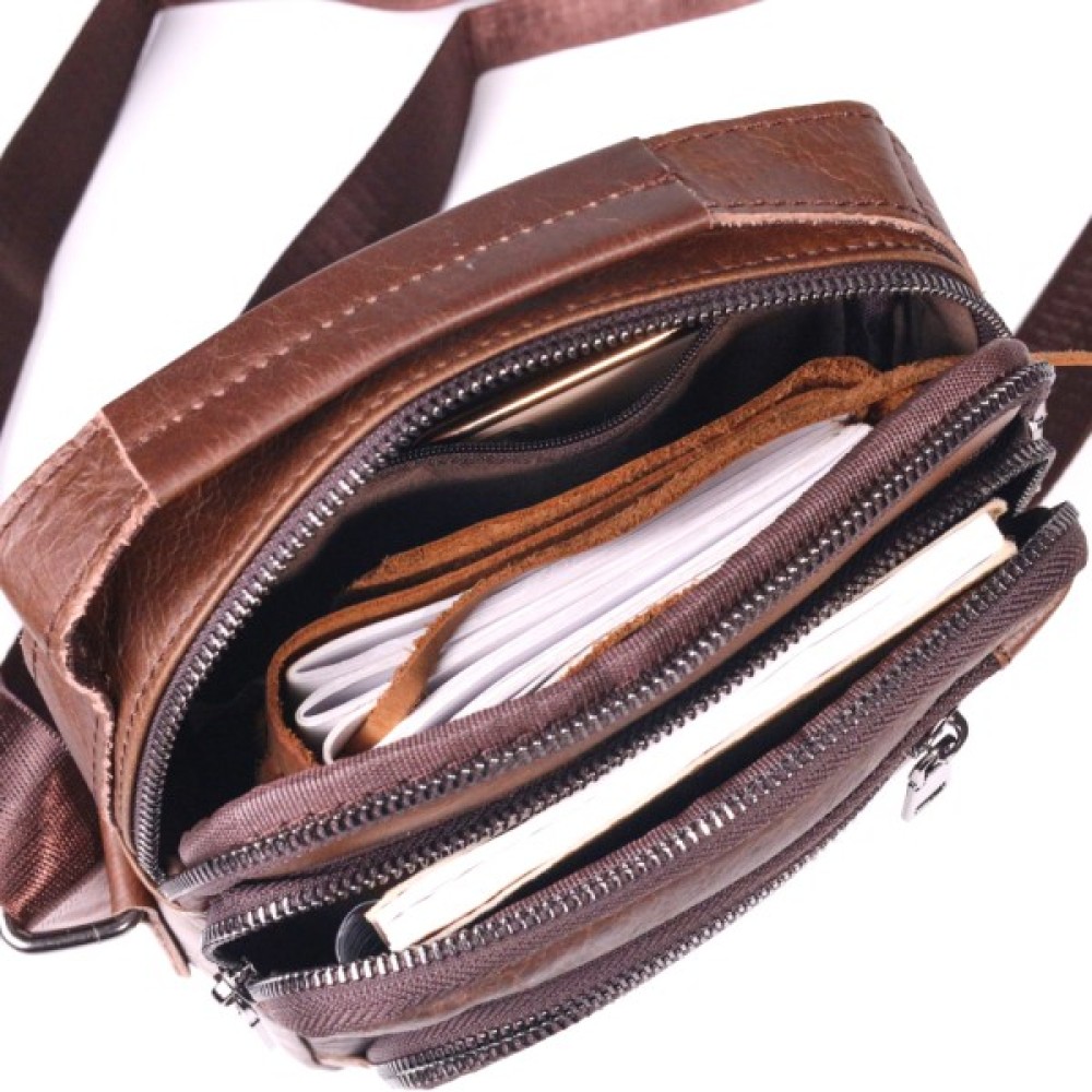 Модель Чоловіча через плече з натуральної шкіри Світло-ко