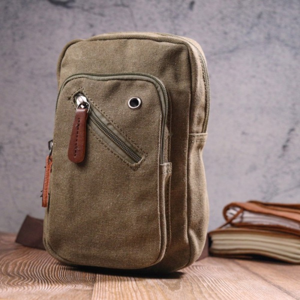Сумка Vintage Чоловіча через плече з текстилю Оливкова (21231)