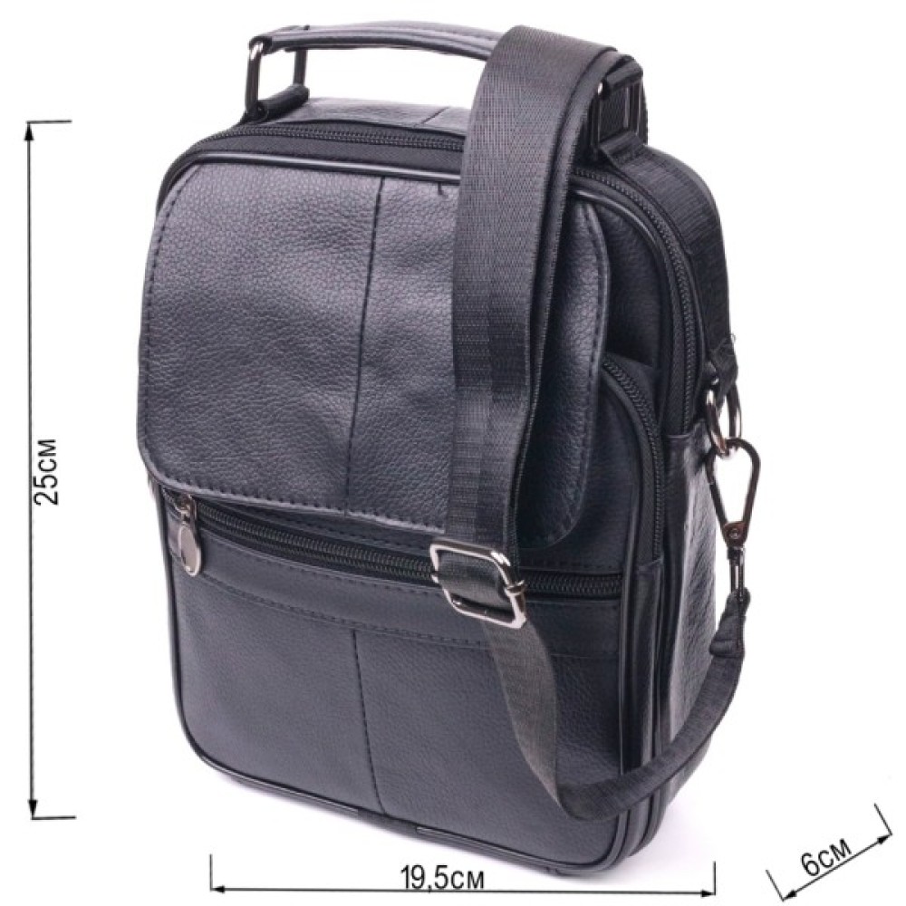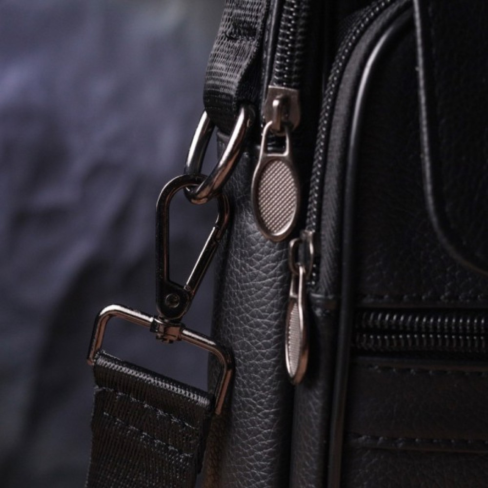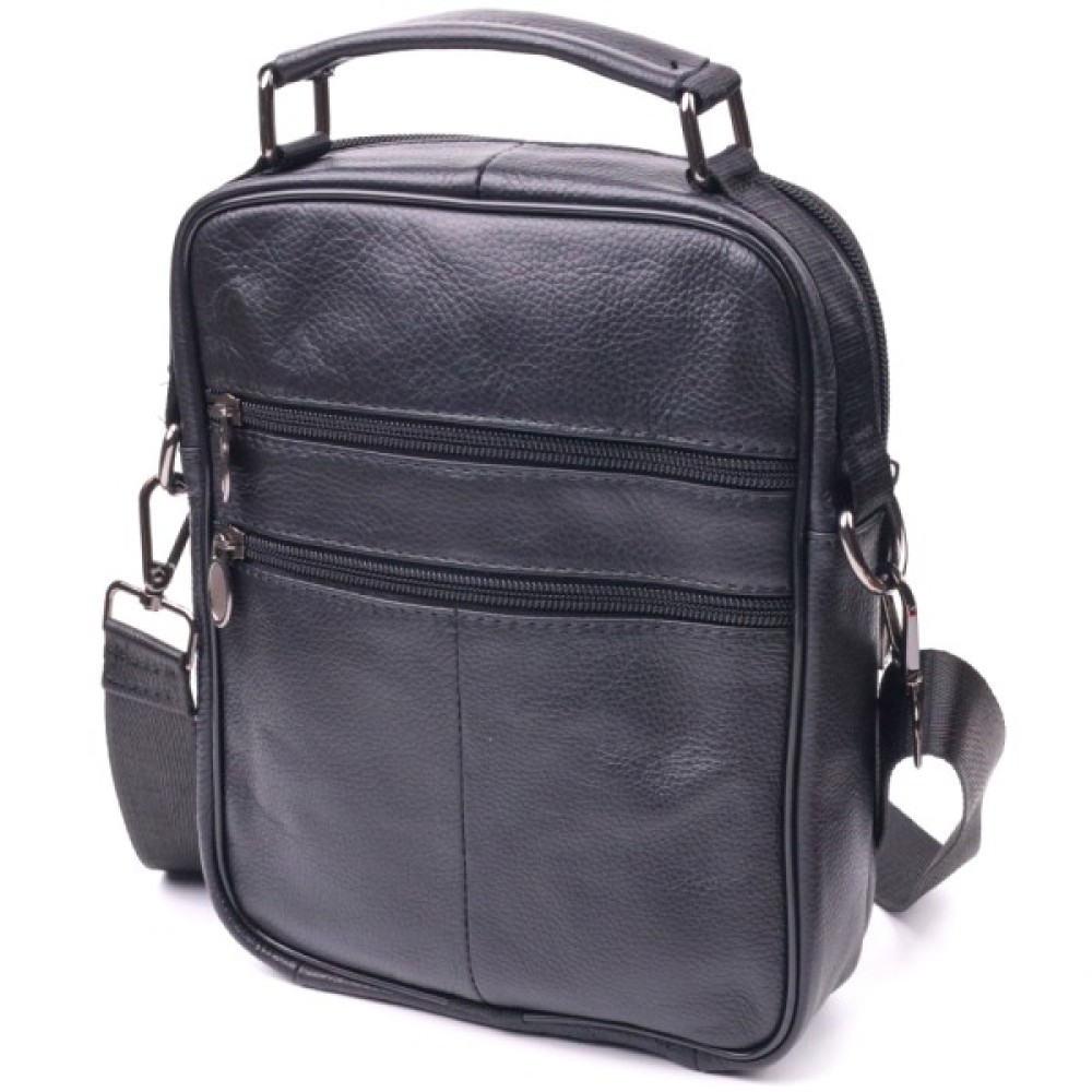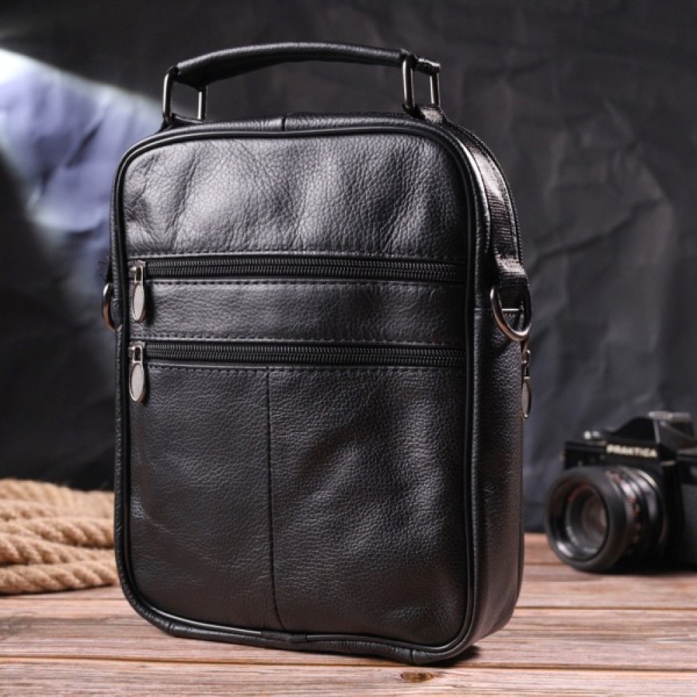Зручна чоловіча сумка середнього розміру із натуральної шкіри, відмінна модель для міського стилю. В аксесуарі одне основне відділення та п'ять кишень різних розмірів, сумку можна носити як у руці, так і на плечі. У сумку з легкістю помістяться всі необхідні речі. З таким аксесуаром усі Ваші речі будуть в порядку, з ним також буде зручно ходити на роботу чи зустрічі. Доповнено виріб якісною фурнітурою срібного кольору. Сумка стане чудовим подарунком для близької людини.