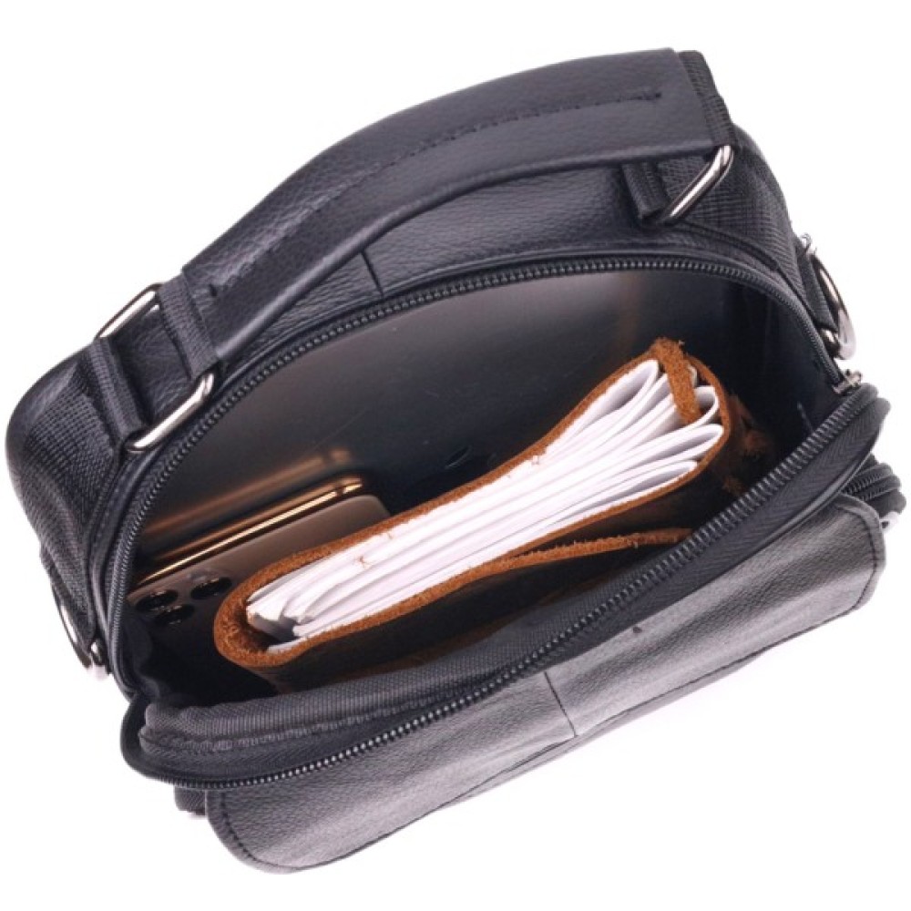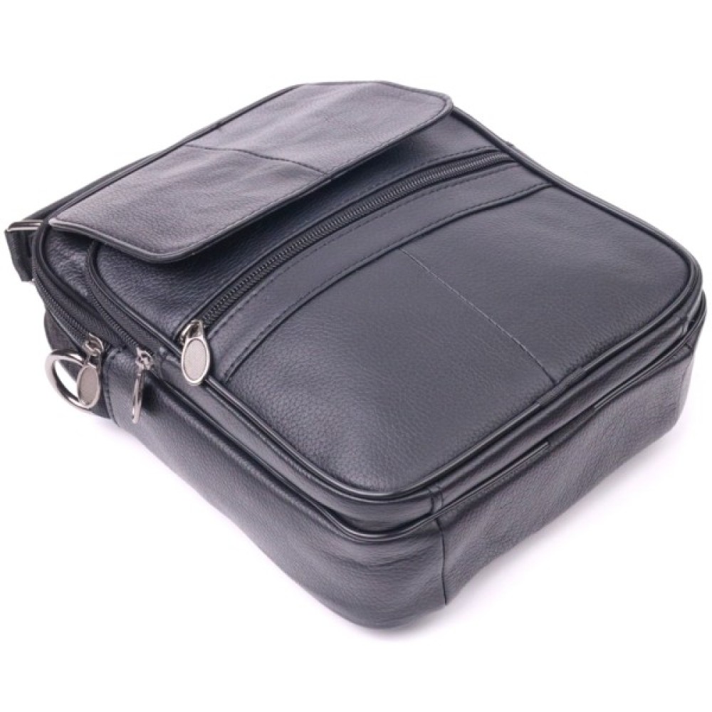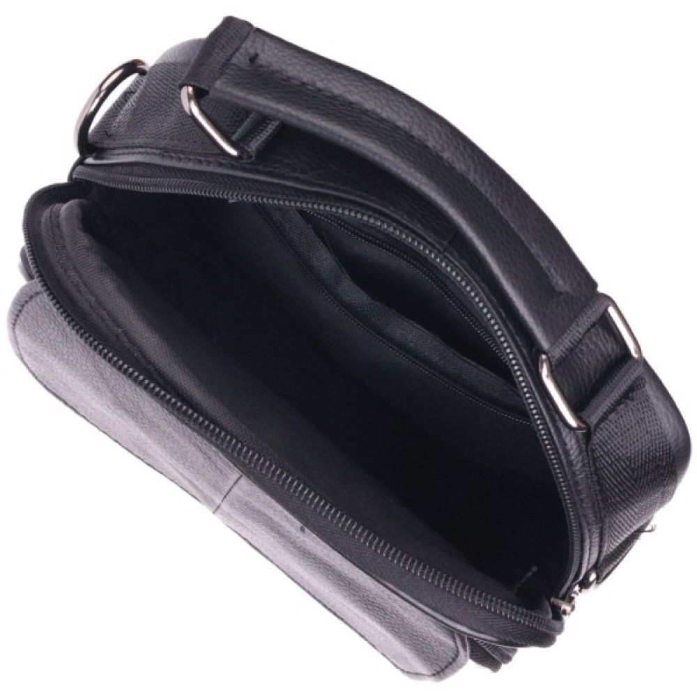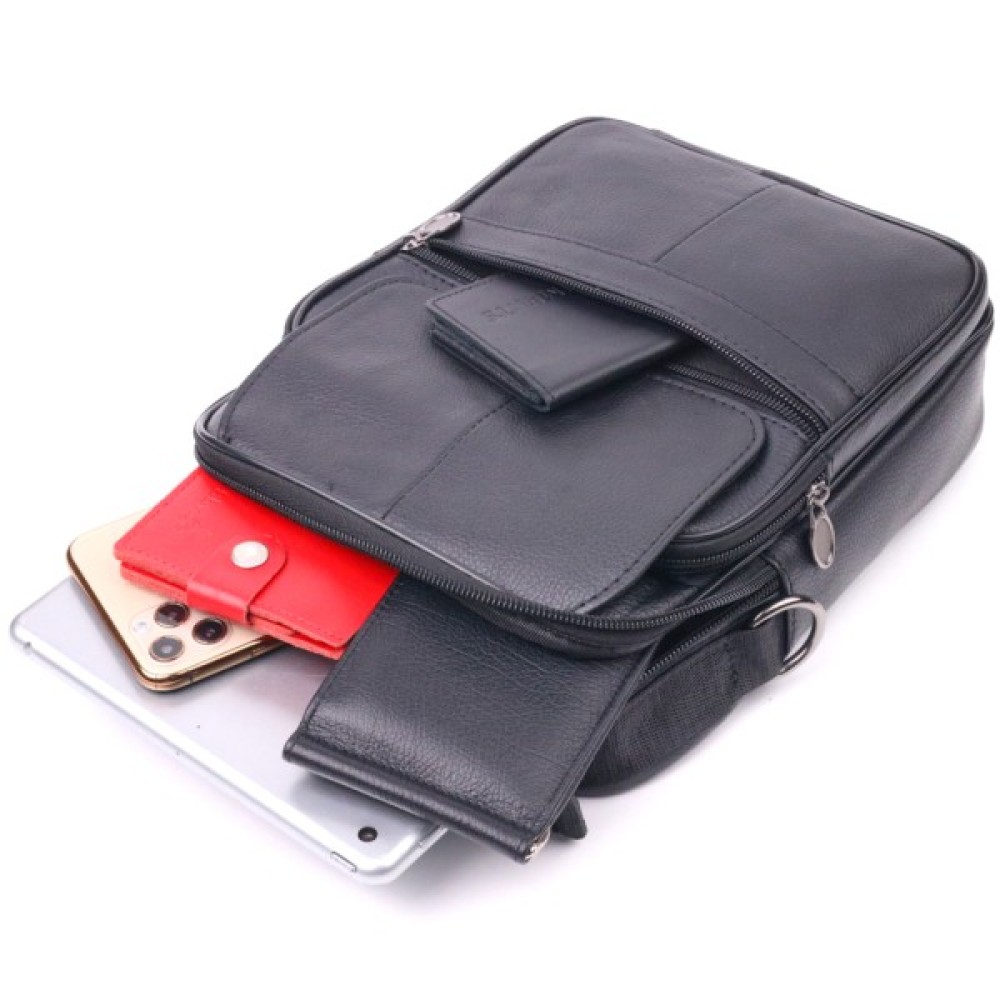 Зручна чоловіча сумка середнього розміру із натуральної шкіри, відмінна модель для міського стилю. В аксесуарі одне основне відділення та п'ять кишень різних розмірів, сумку можна носити як у руці, так і на плечі. У сумку з легкістю помістяться всі необхідні речі. З таким аксесуаром усі Ваші речі будуть в порядку, з ним також буде зручно ходити на роботу чи зустрічі. Доповнено виріб якісною фурнітурою срібного кольору. Сумка стане чудовим подарунком для близької людини.