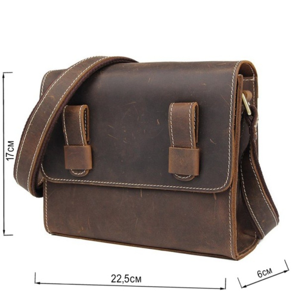 Містка почтальонка для справжніх чоловіків в вінтажному стилі. Сумка має особливий дизайном, який виділить вас з натовпу і додасть більше строгості і солідності вашому стилю. Особливістю шкіри, з якої виконана дана модель, є те, що з часом така шкіра виглядає ще більш ефектно. Сумка доповнена якісною фурнітурою. Дизайн самої моделі продуманий до всіх дрібниць. Аксесуар упакований в тканинний чохол. Така сумка стане найпрекраснішим подарунком для будь-якого чоловіка.