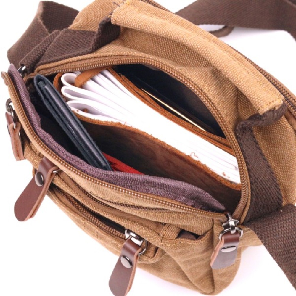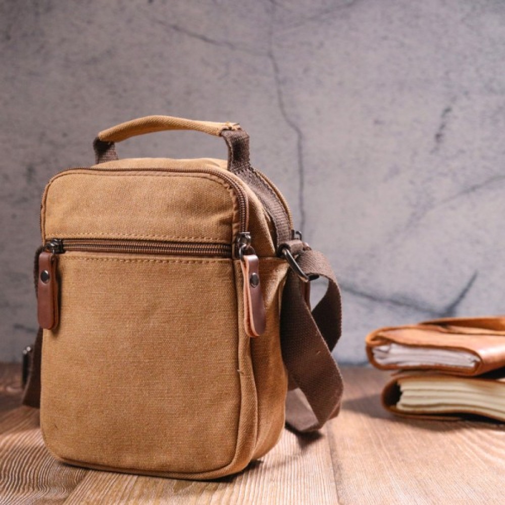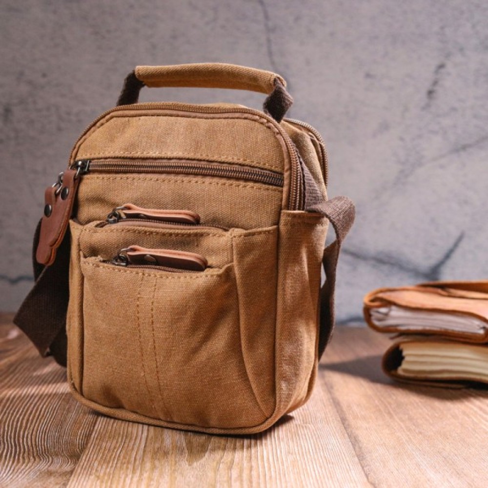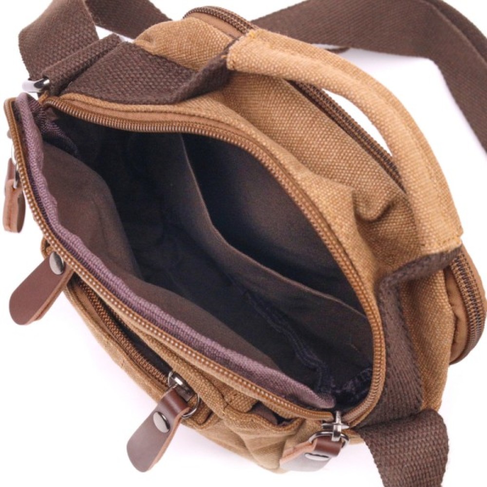 Сумка Vintage Чоловіча з щільного текстилю Коричнева (21245)